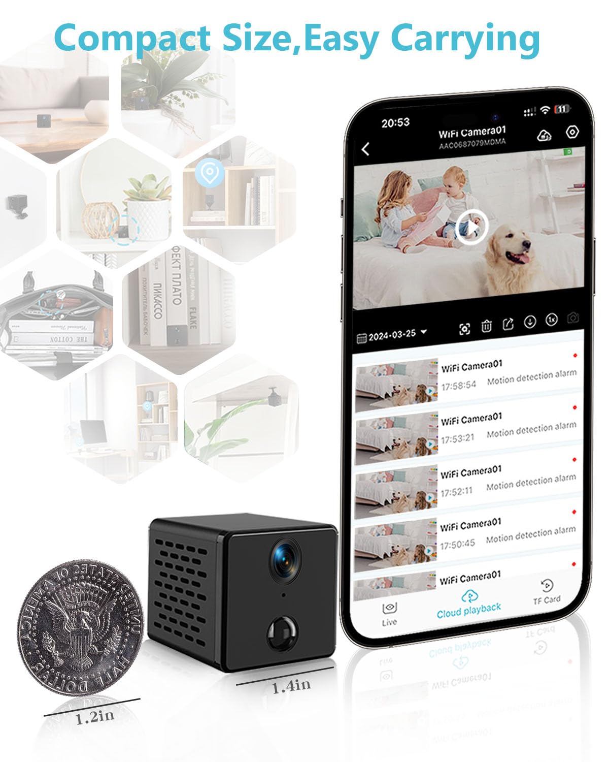 Ultra-Compact Design: Discover the ultimate in covert surveillance with our mini wireless camera. Its incredibly compact size allows for effortless installation without the need for wiring, making it easy to conceal in any setting. Coupled with our free App, you can conveniently conduct remote monitoring from anywhere, anytime.