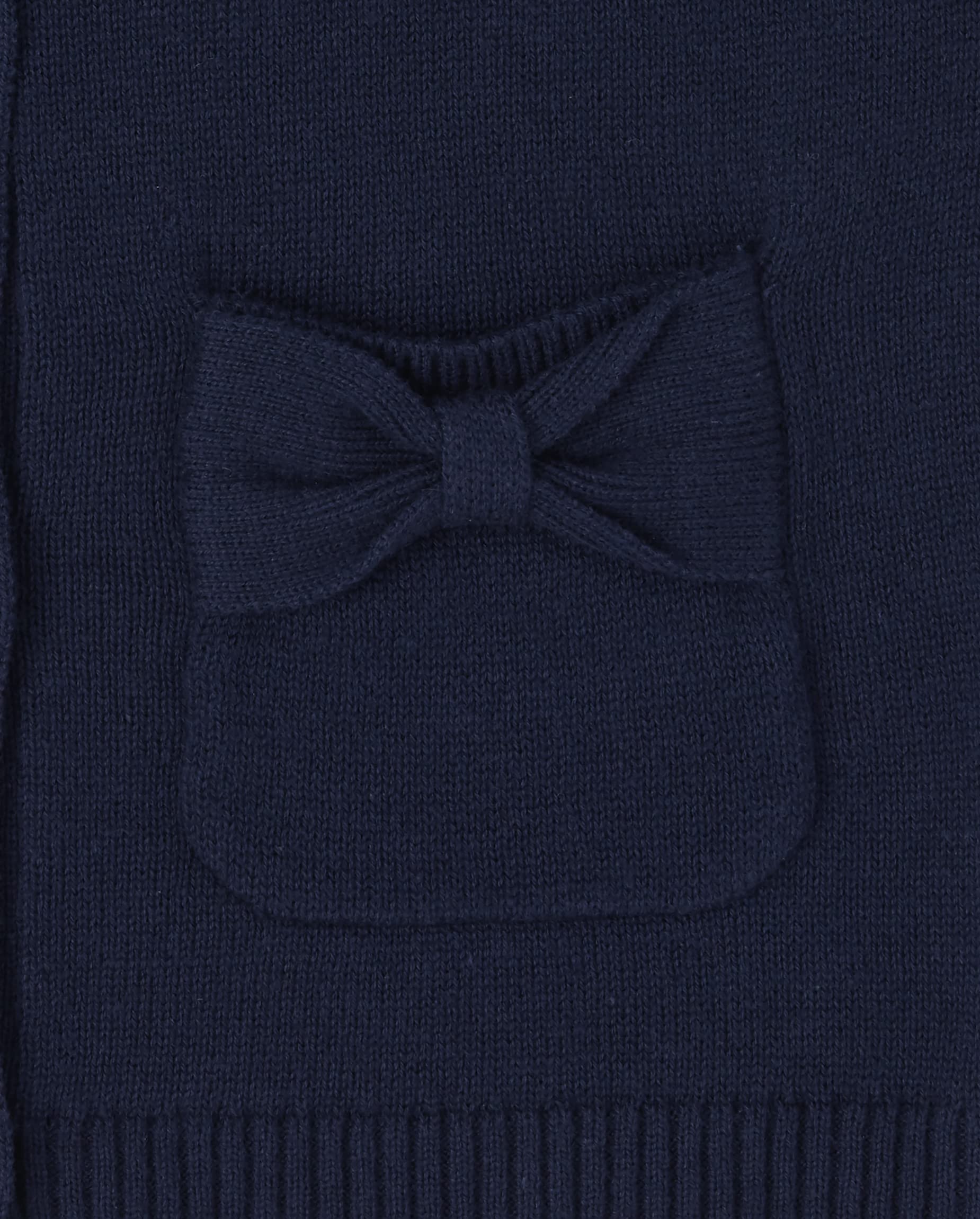 Styled with long sleeves, button-front closure, ribbed trimming and bow-top patch pockets