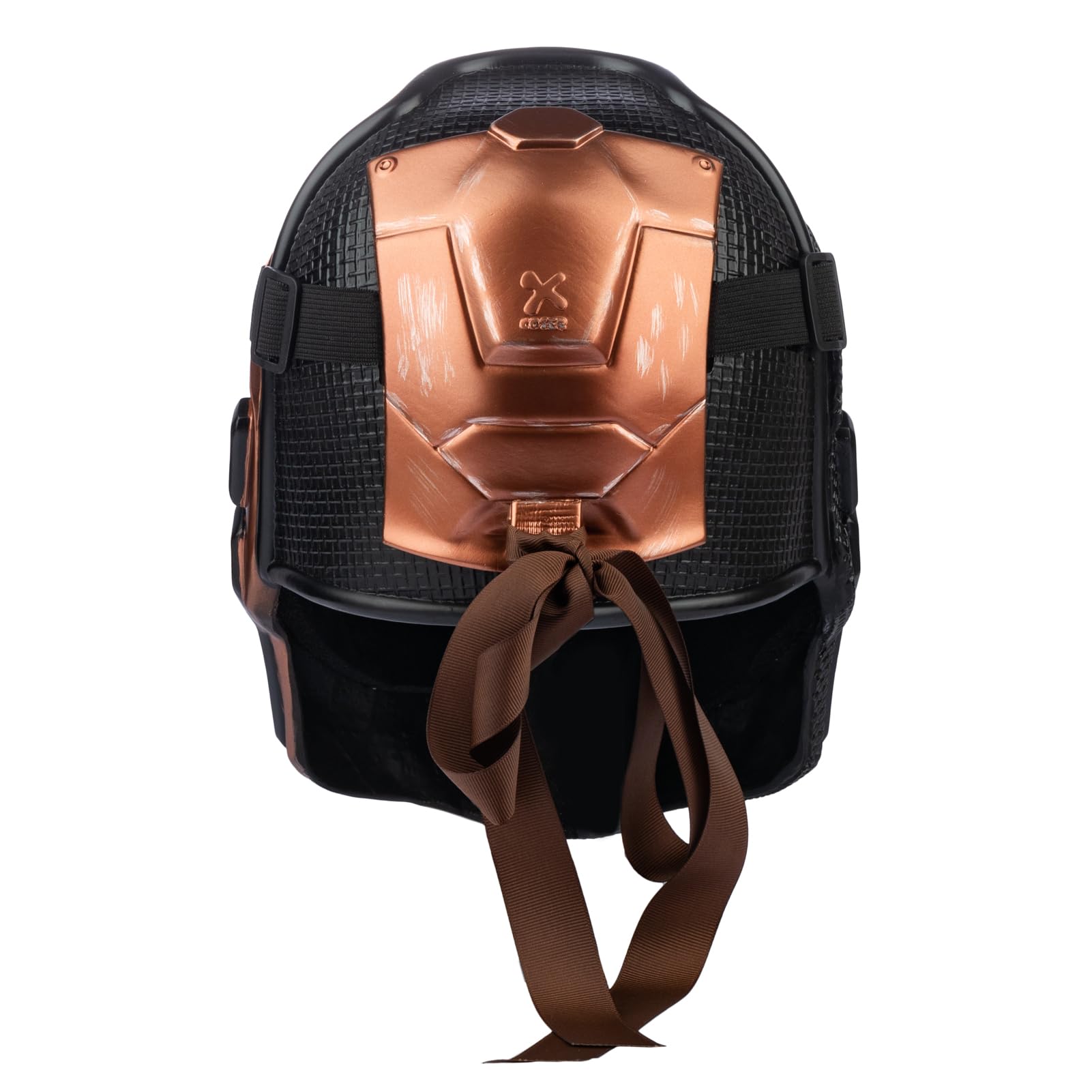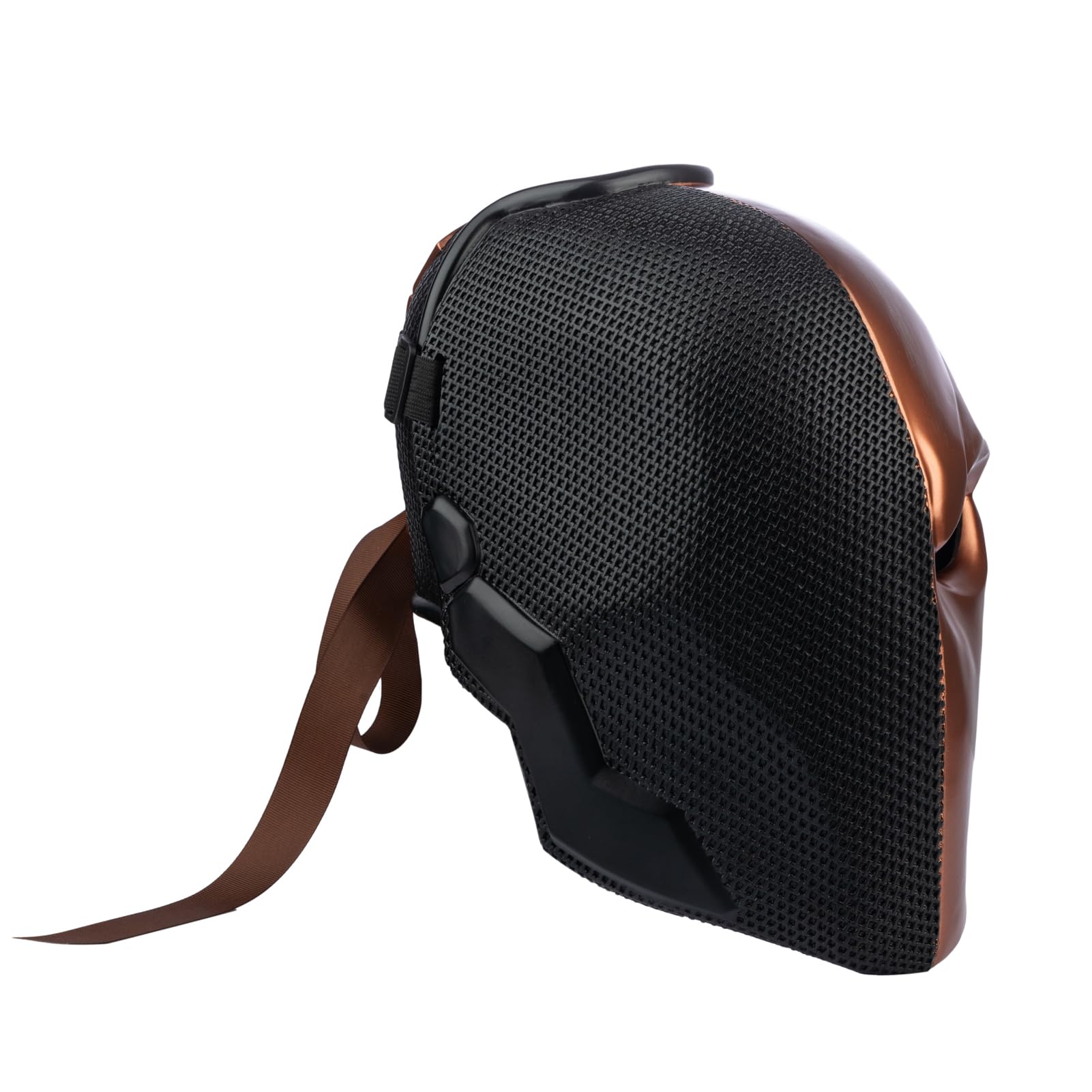 Characters: Inspired by the helmet of the supervillain from comics, half face with battle scars, while the other covered with black mesh