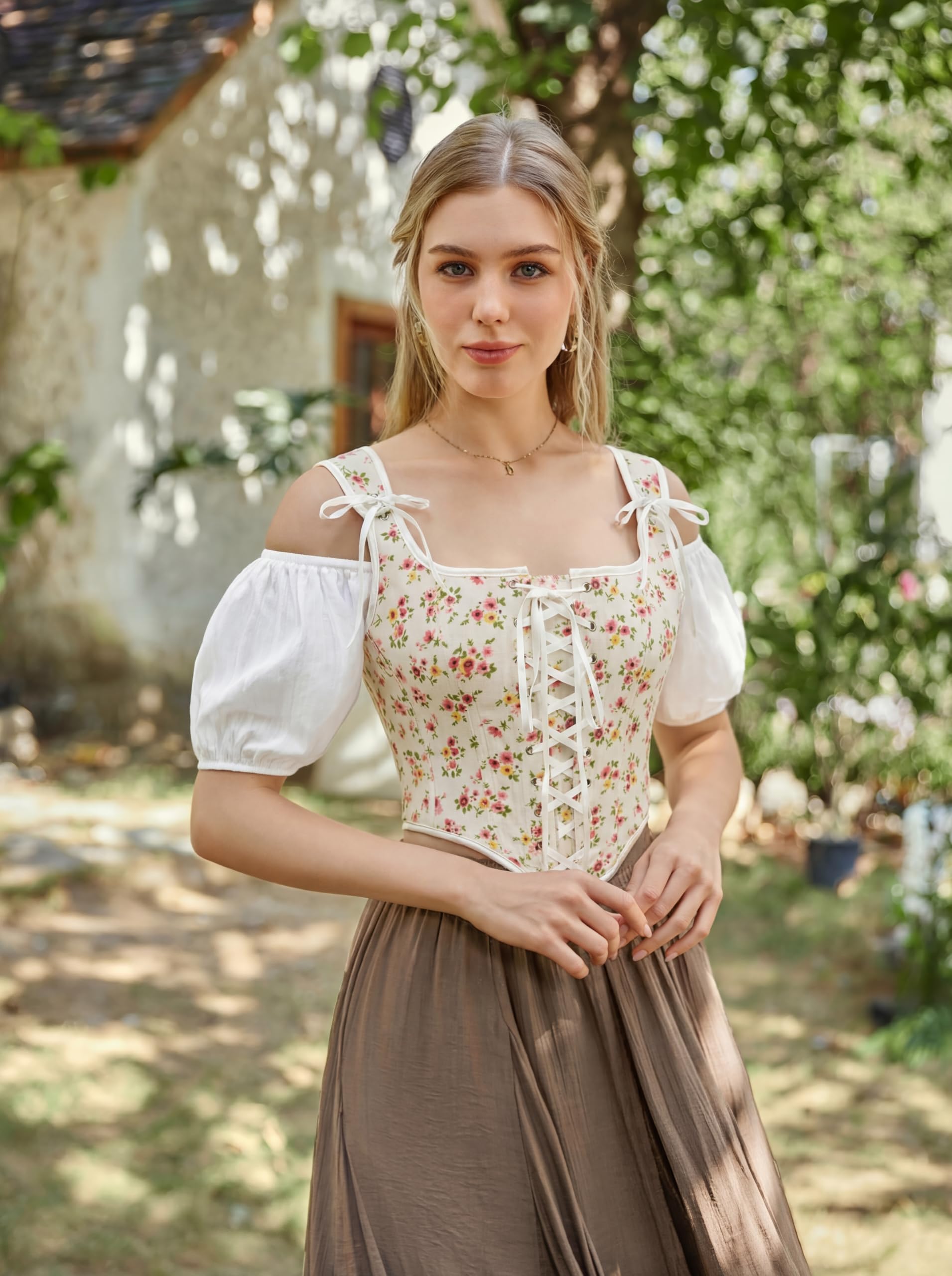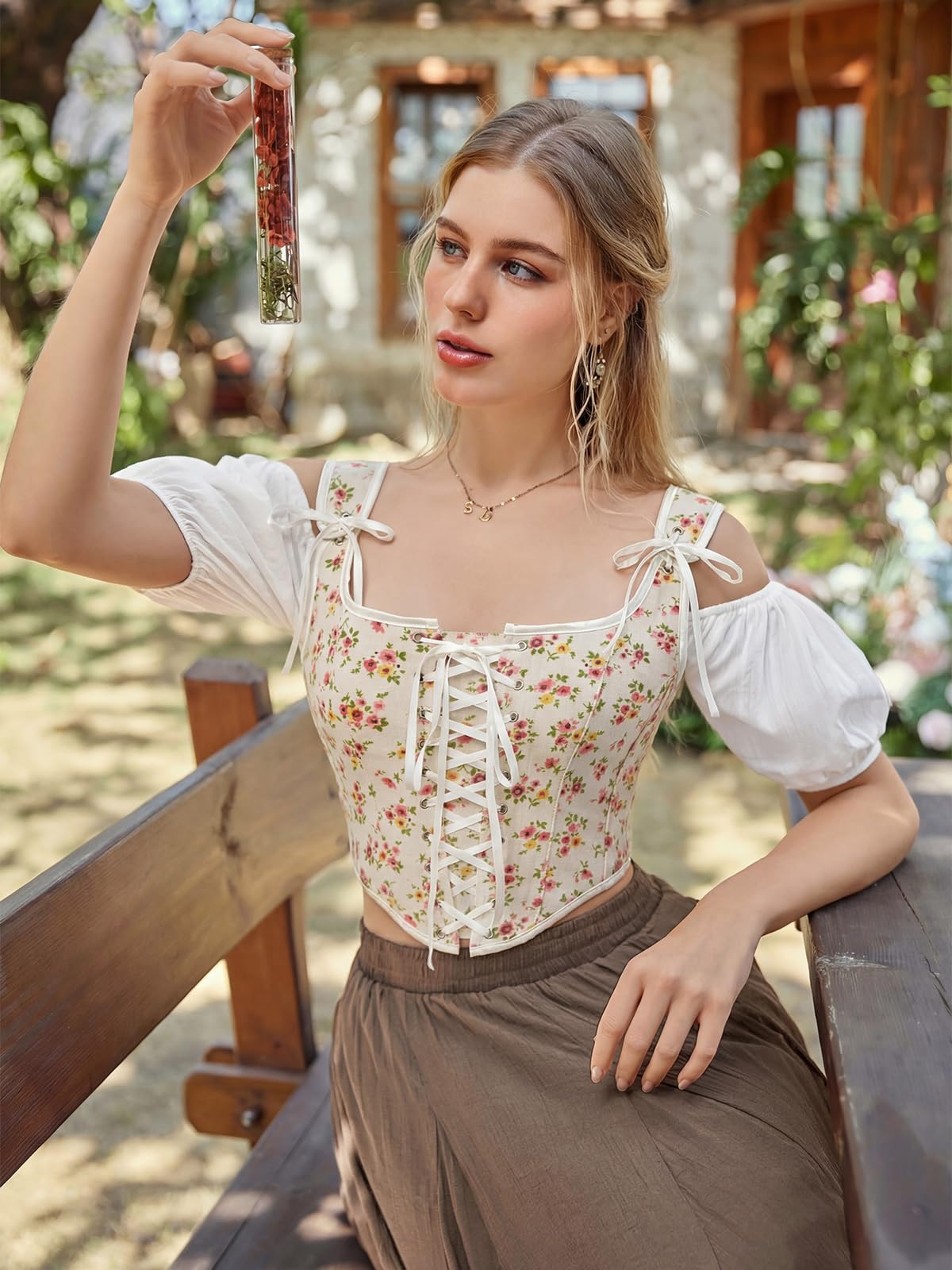 OCCASIONS - These floral vintage corset tops are perfect for various occasions, including Renaissance fairs, pirate-inspired parties, Halloween costumes, and medieval fairs. They can effortlessly elevate your look for any event