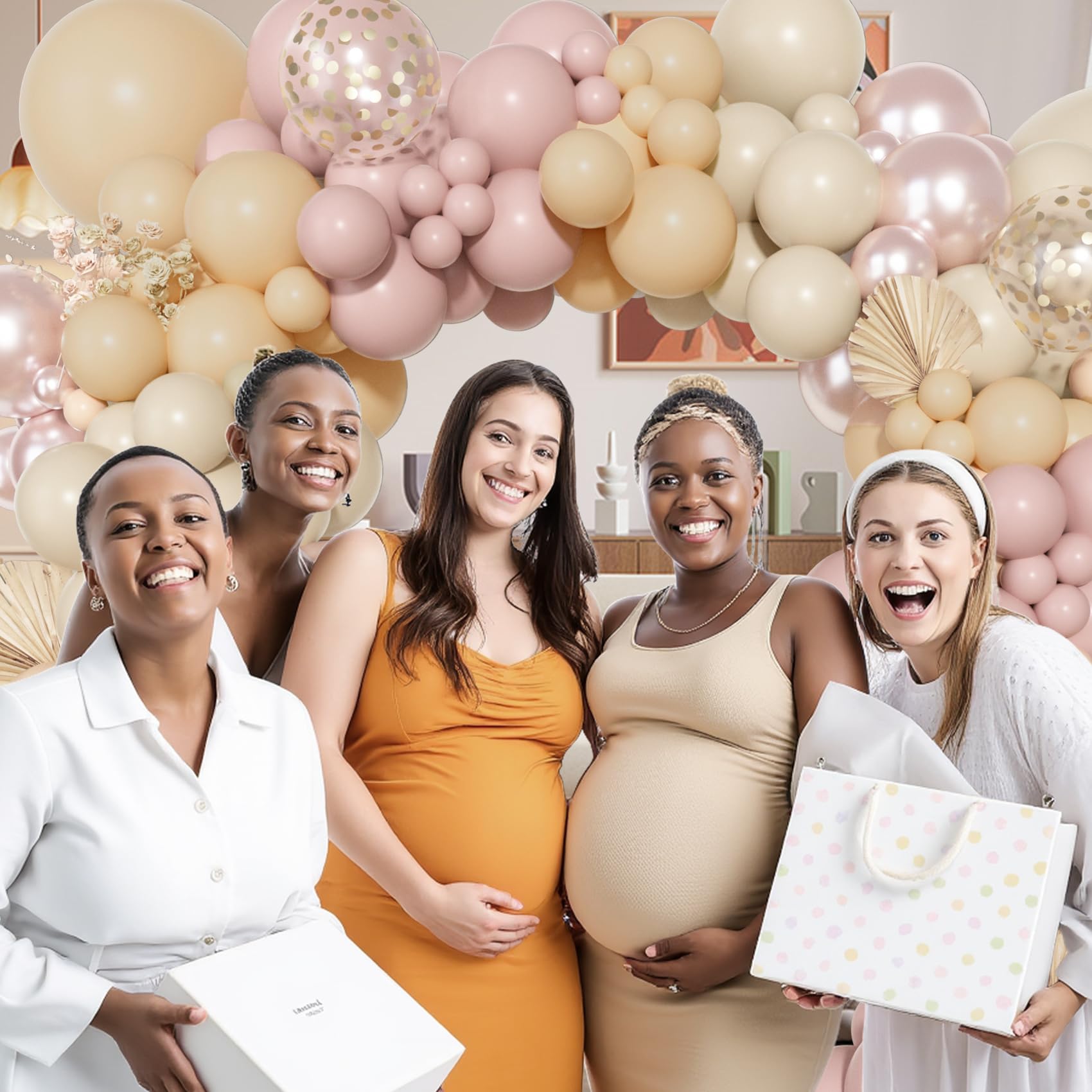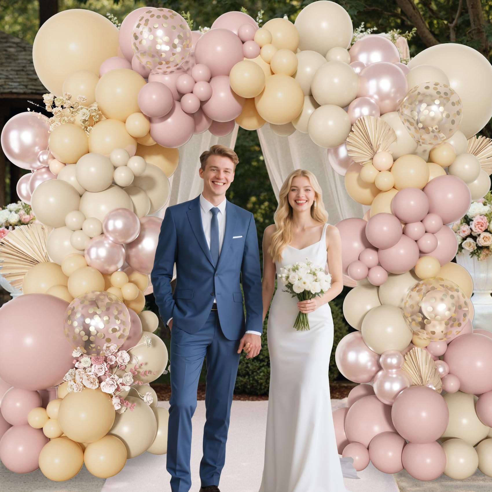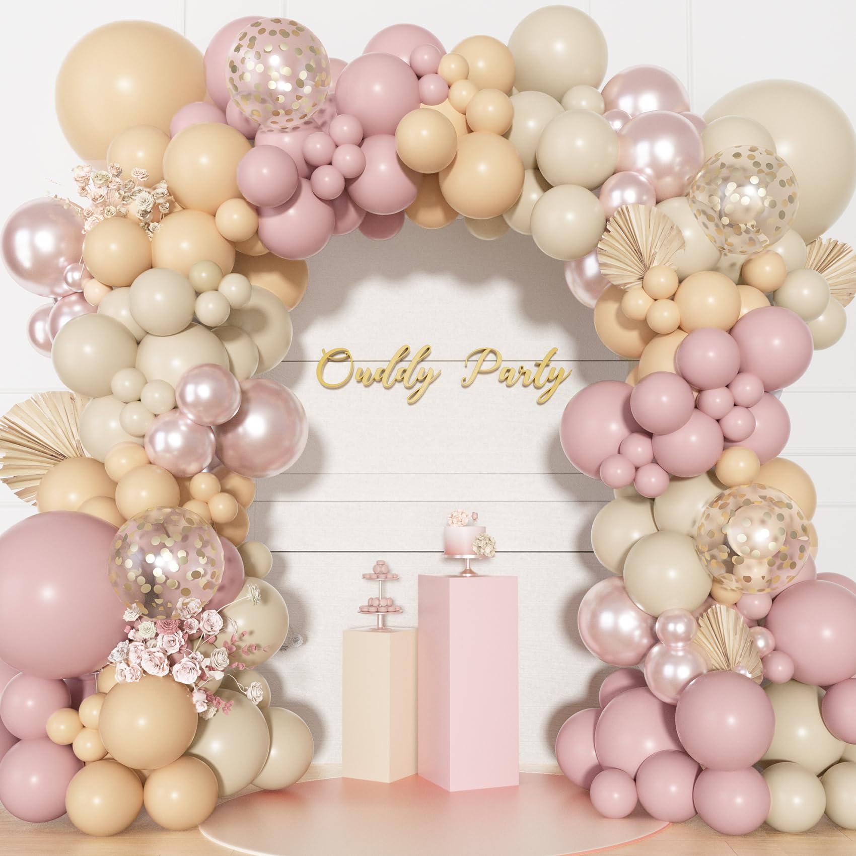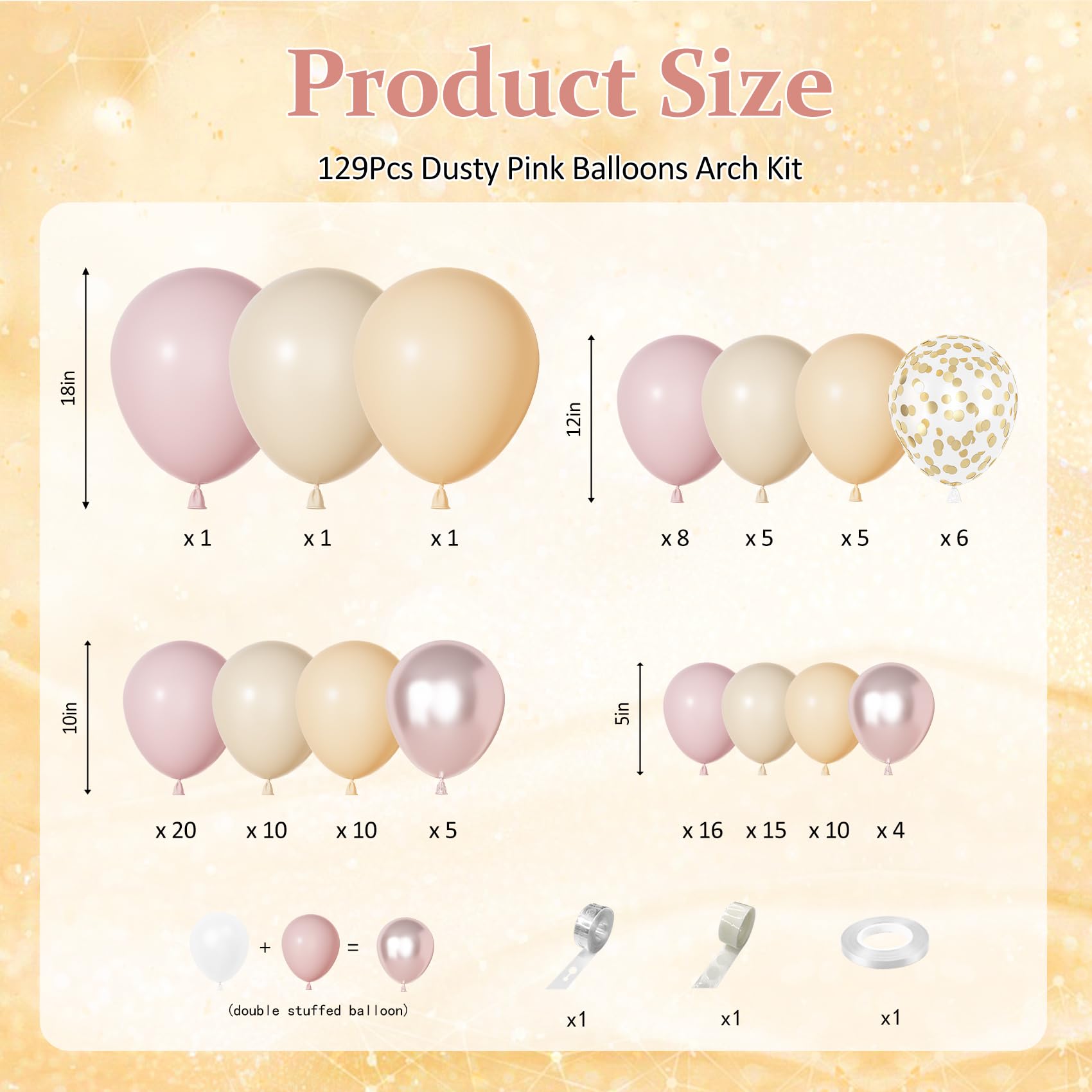 Dusty Pink Balloons Kit: Includes 3pcs 18in balloons(dusty pink/nude/sand), 24pcs 12in latex/confetti balloons(dusty pink/nude/sand), 90pcs 10/5in boho balloons(dusty pink/nude/sand/double stuffed pearl pink), 3pcs balloon tools