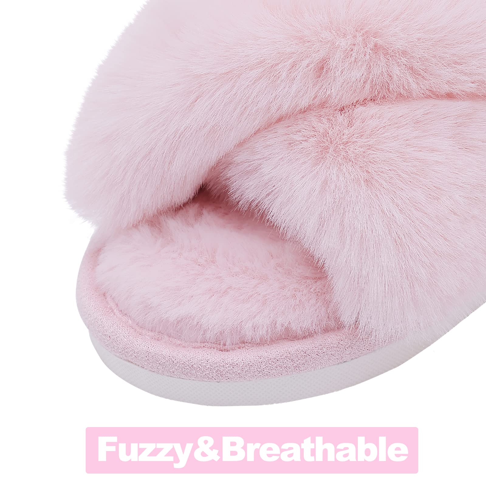 FASHION & ELEGANT: Breathable open-toe along with trendy faux fur design makes these womens slippers stylish and practical. Easily slides in whenever you want your feet relaxed.