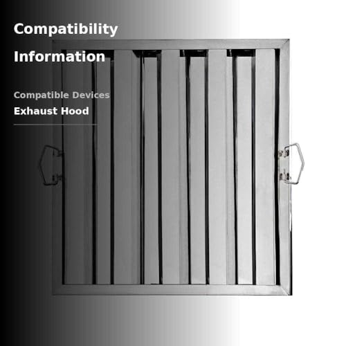 Made of welded type 430 stainless steel construction, this hood filter withstands the demands of your busy, commercial kitchen. 20" W x 20" H