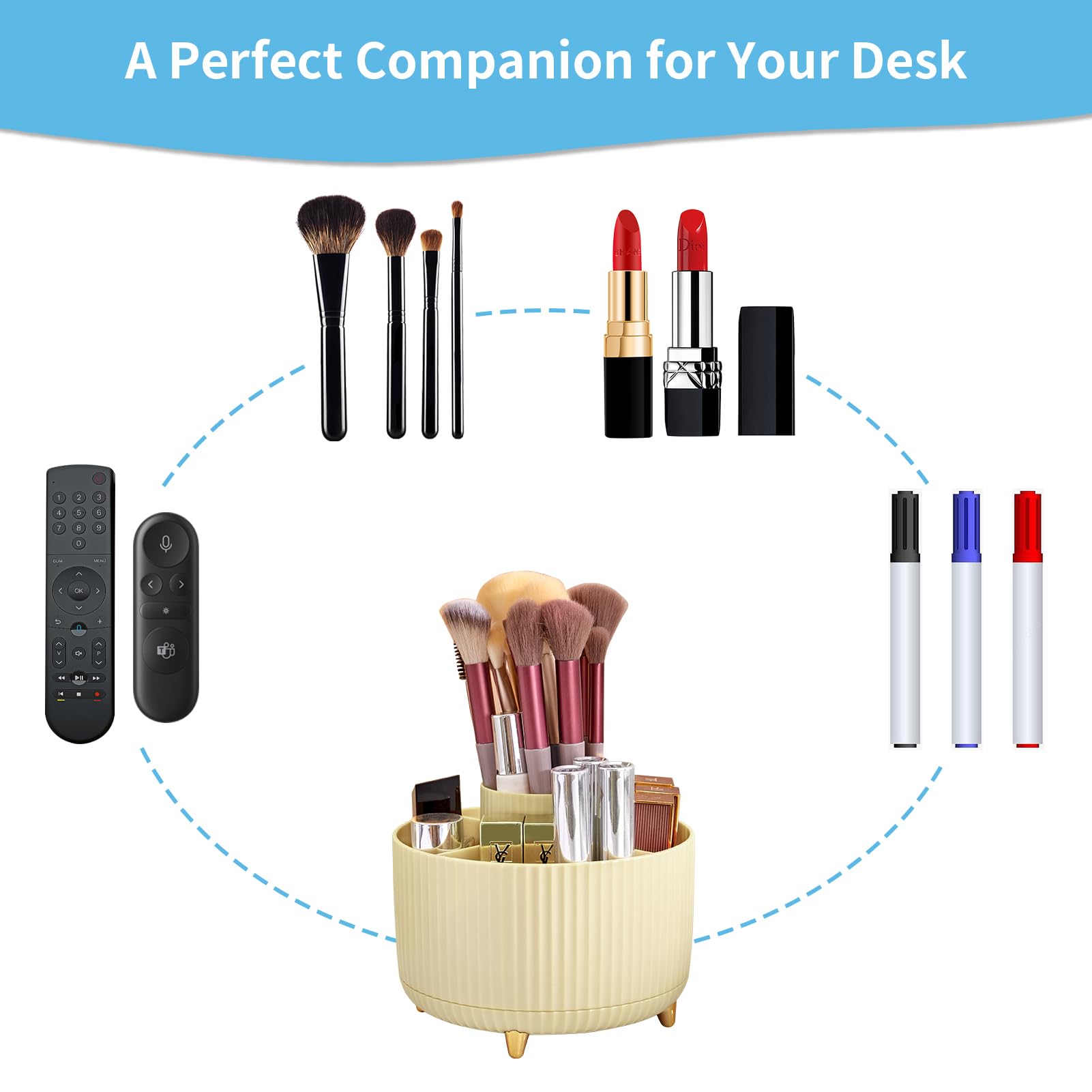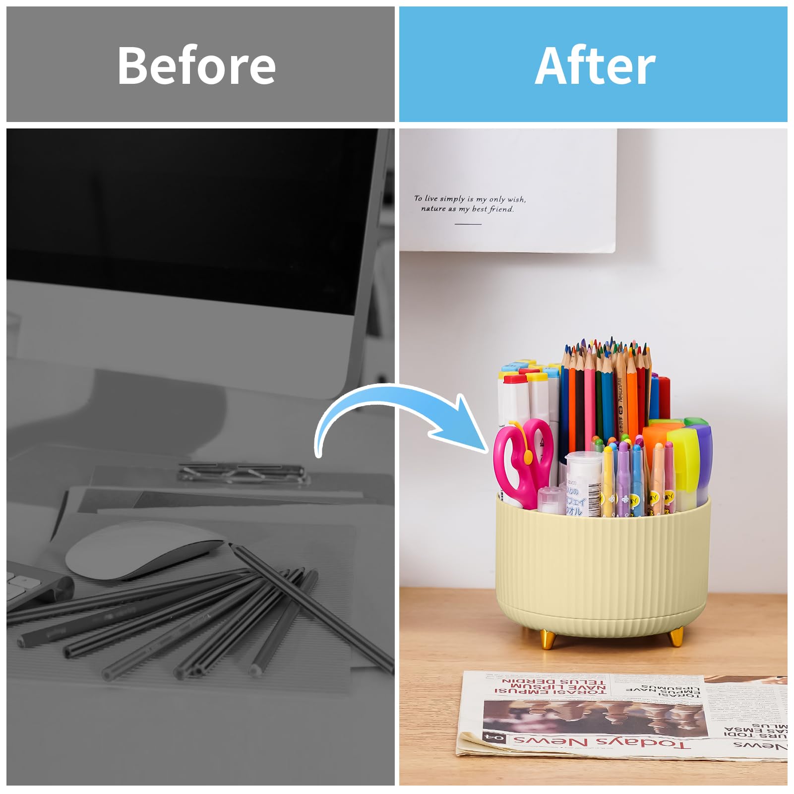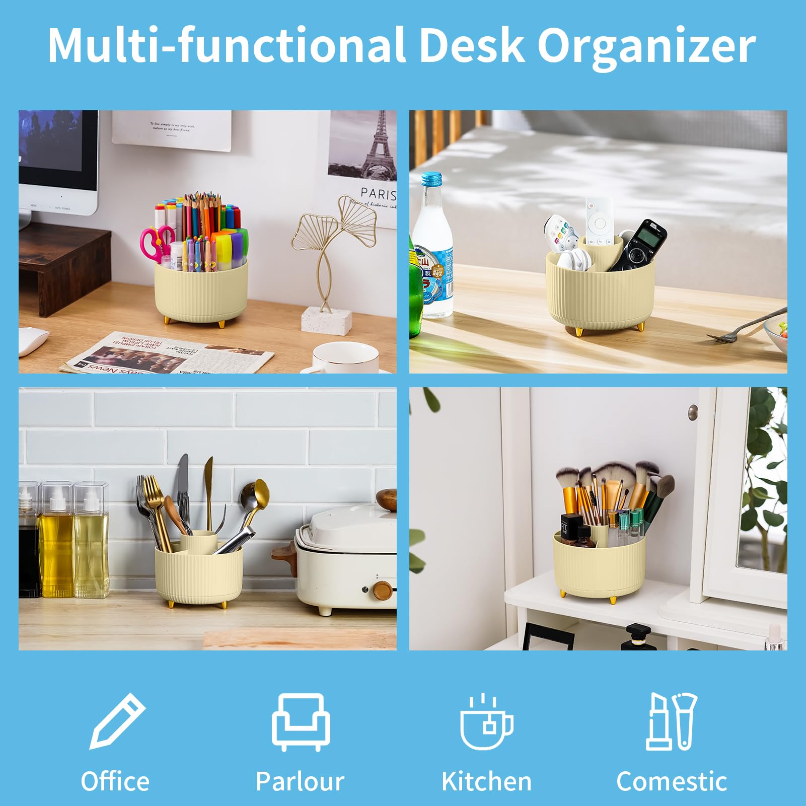 【Multipurpose Desktop Organizer】: This rotating storage organizer is perfect for pencils, cosmetics, bathroom necessities, toiletries, and even kitchen utensils. Try it in your craft room, playroom, laundry/utility room, and even inside bathroom cabinets or under the sink; Store extra office supplies like painting pens, correction tape, scissors, TV Remote, and more; Even headphones or a charger will no longer be lying around in the future! Maximize your vertical space and keep your desk clear.