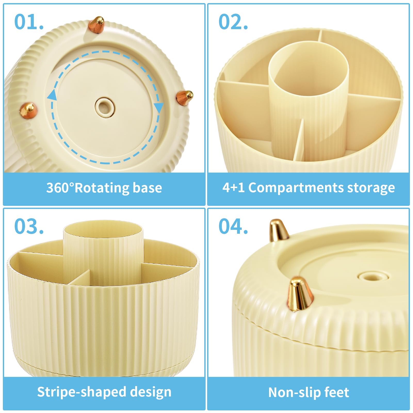 【Smart 360 Degree Revolving Design】: This desktop organizer can be turned up to 360-degree rotation to the left and right. This storage caddy allows you to keep all of your small items within reach while staying out of your way. You can always get what you want quickly and easily. The product can be bilaterally and smoothly rotated, just turn as you please.