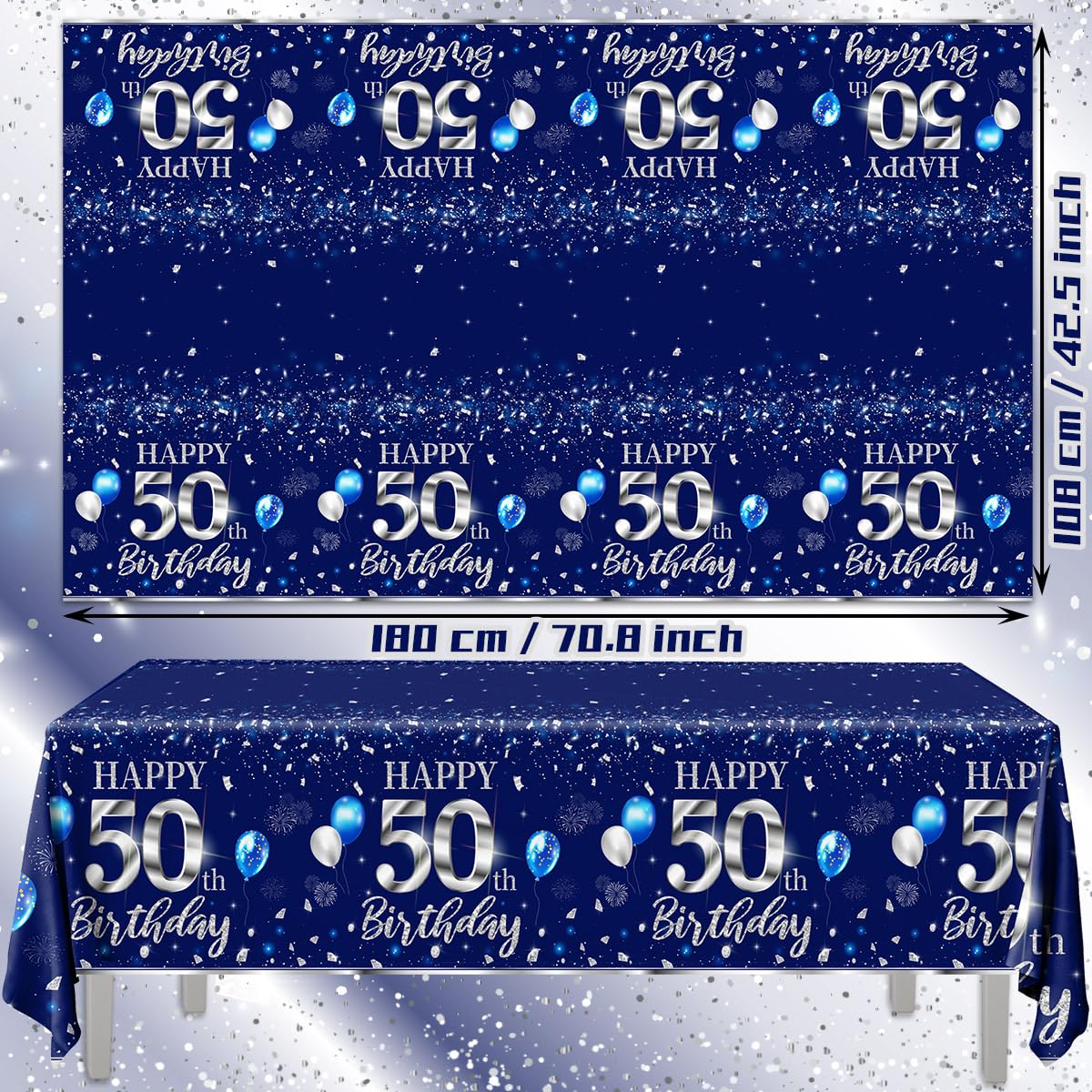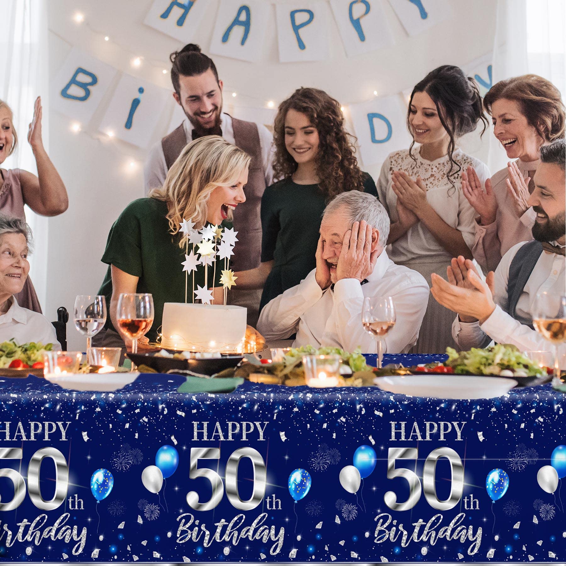 【Exquisite Pattern】The 50th birthday party decorations use blue and sliver as the theme color. It is a very fashionable and romantic color, printed with sparkling diamonds, blooming fireworks, floating paper scraps, and blue and white balloons surrounding "Happy 50th Birthday". This can add elegance to the celebration and become the most beautiful decoration on the dining table.