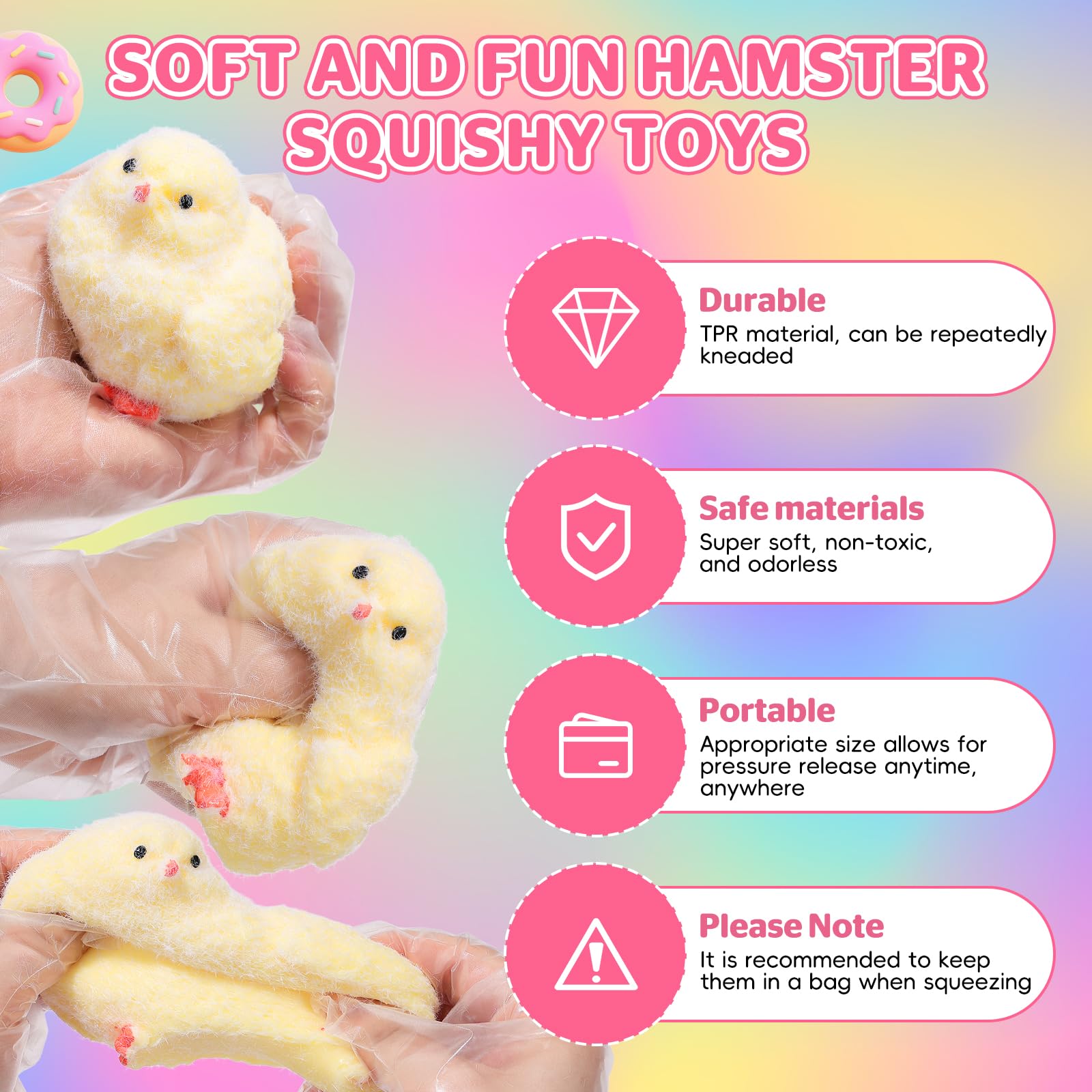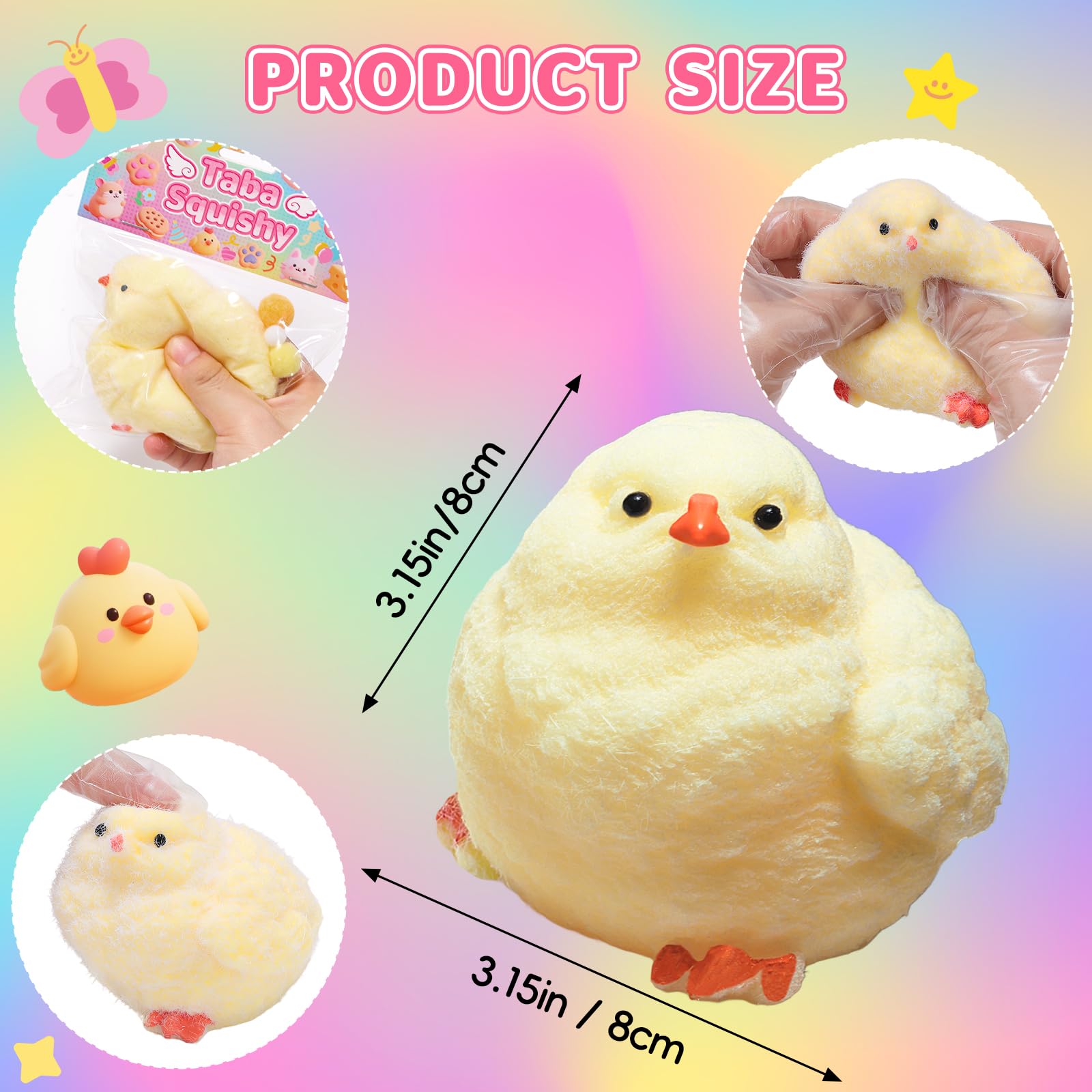 【Safe Materials】The taba squishy made of non-toxic TPR material, it is not only safe but also very durable, and the transparent bag is made of PVC material. High quality materials can ensure the long-term use of the product, and the non stick PVC packaging bag is easy to store, keeping the chick toys clean. (Handmade entirely, there may be minor flaws)