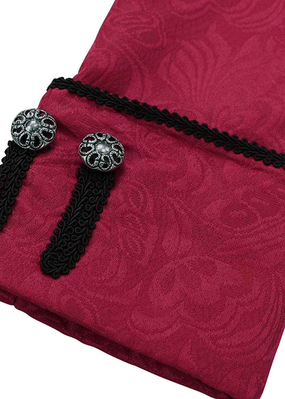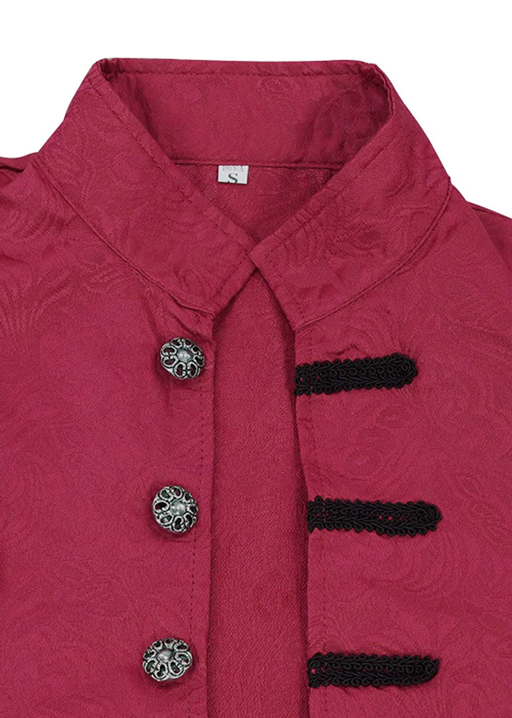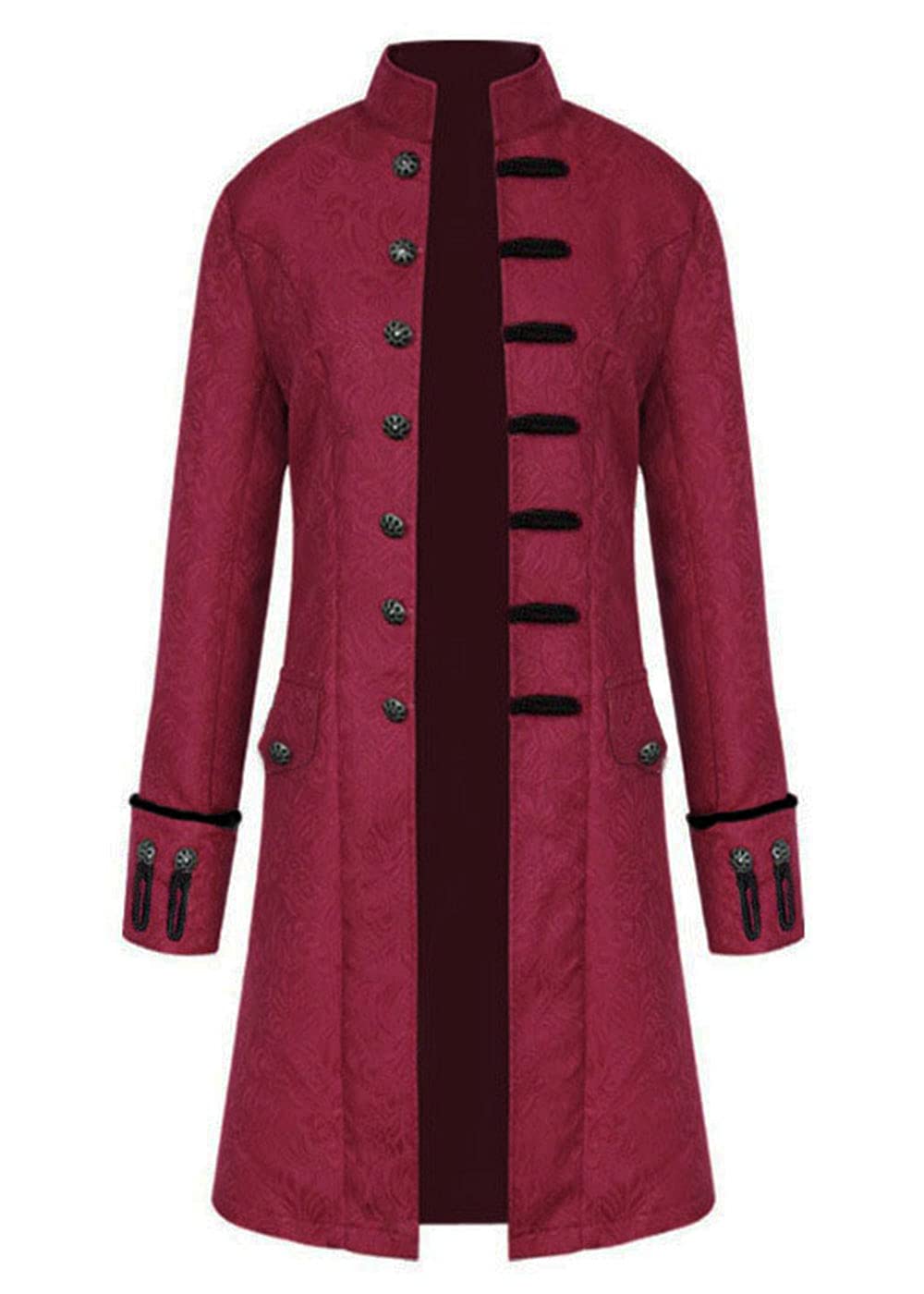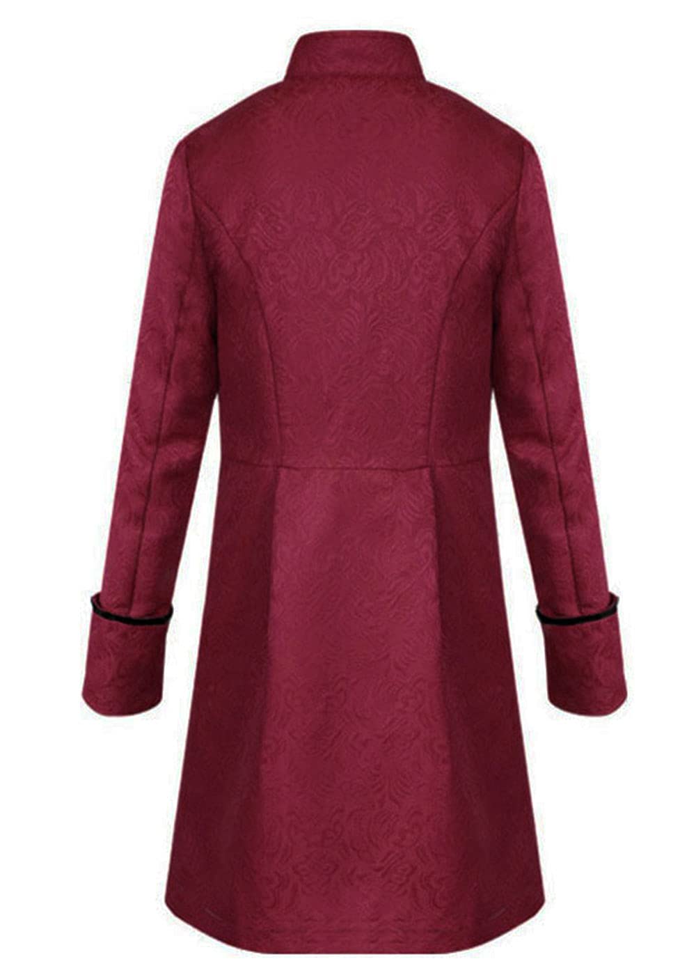★【Design】: Stand Collar,Double Breasted,Two Flat Pockets,Slim Fit, which makes you look Smart; Goth Steampunk Victorian Style. Knee Length Frock Coat,Open front with 7 Decorative Buttons matching braiding design(Decorative Braiding Button,Not Really Button-hole); Long Sleeve with Upturned Cuff Matching Braiding and Buttons;Round Shape Golden Buttons, Side Flap Pockets With Buttons and Braiding.