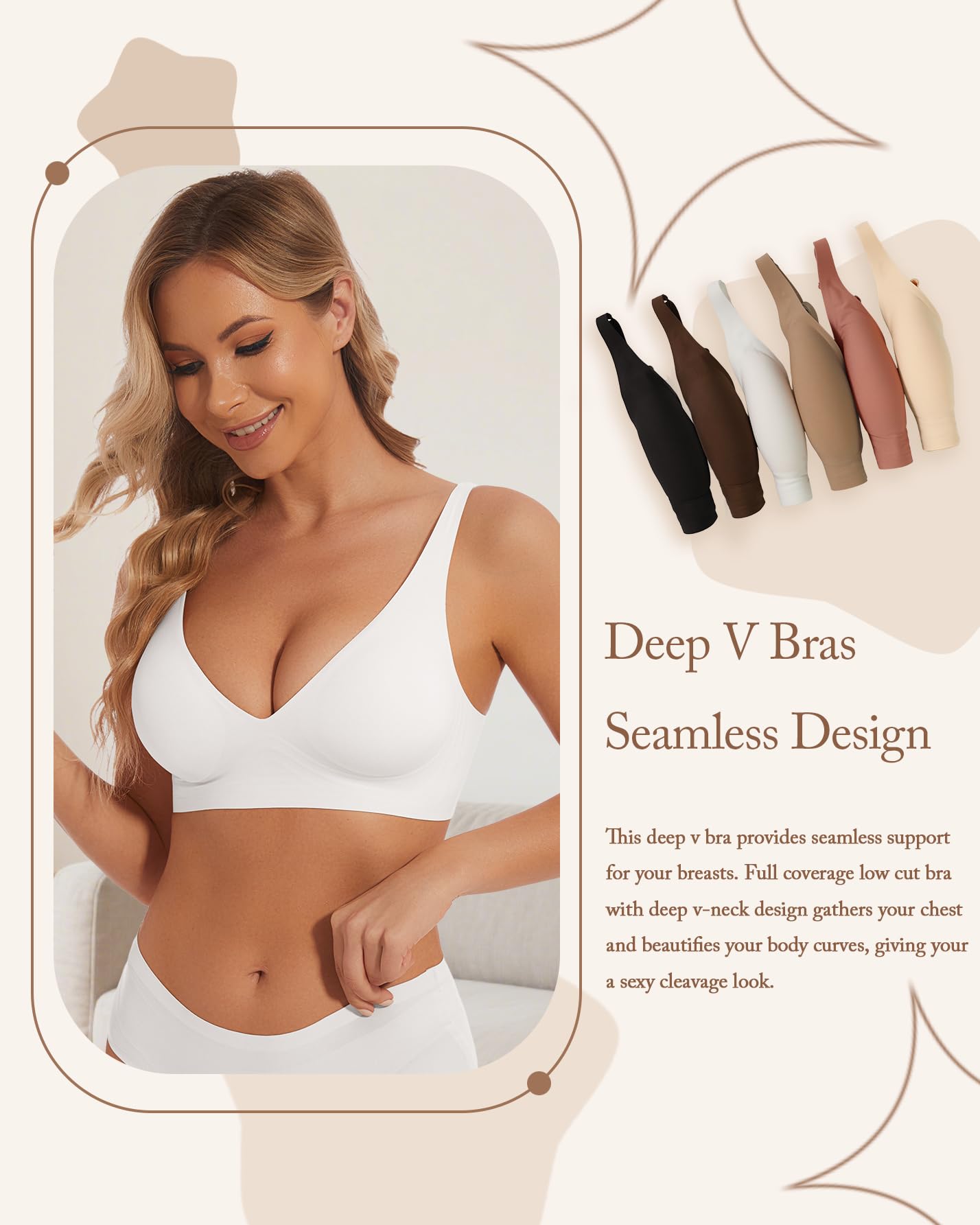[Low Cut Bra for Deep V Neck - Slightly Push Up Effect]: This low cut bra provides seamless support for your breasts; full coverage bra with deep V-neck design gathers your chest and beautifies your body curves, giving you sexy cleavage look