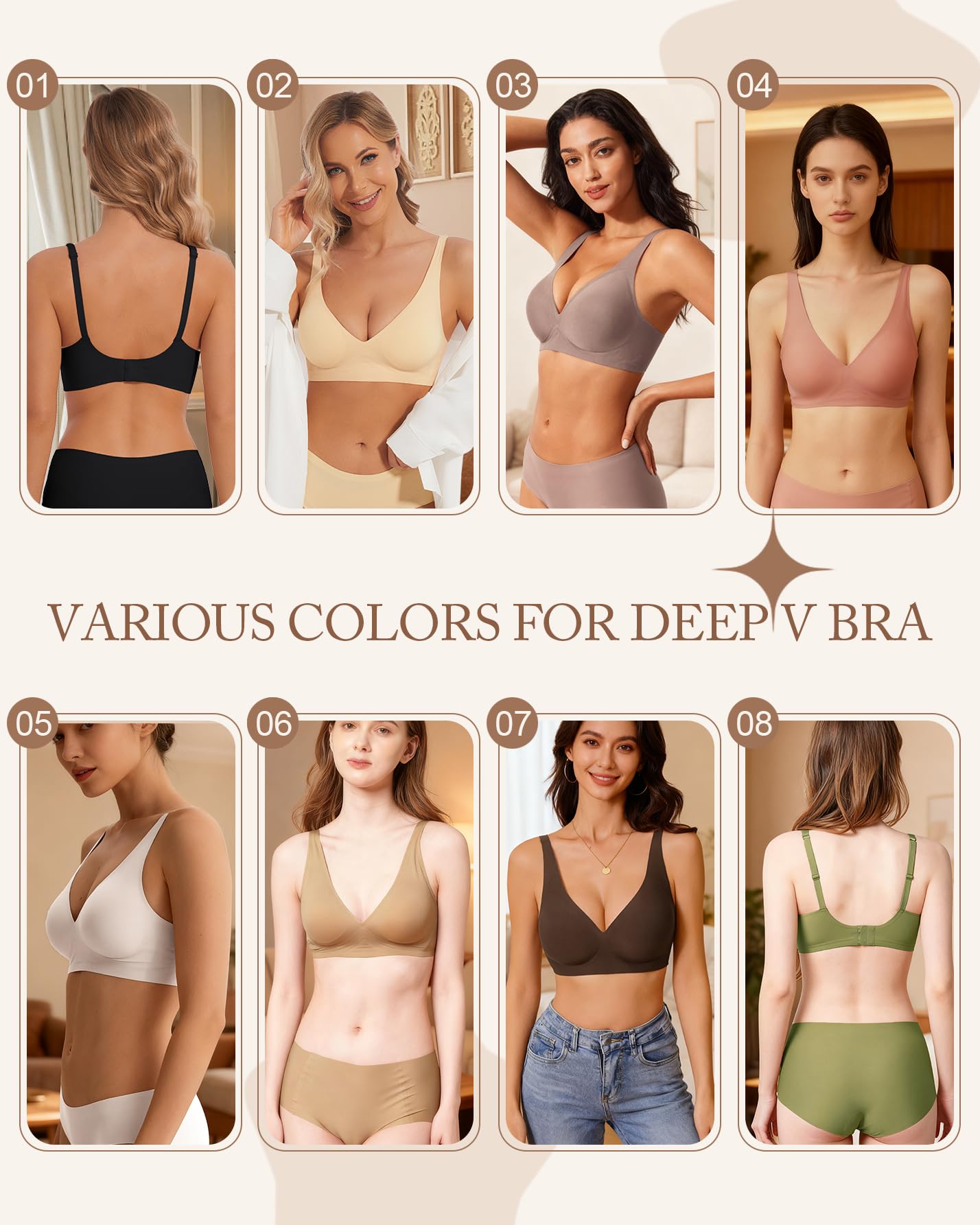 [Versatile Occasion & All Match - Bralettes for Women]: This wireless bra is an ideal choice for date, prom, party, home and casual daily match; wearing our v neck bra under top, t-shirt or dress, enjoy a seamless look that will complement any outfit