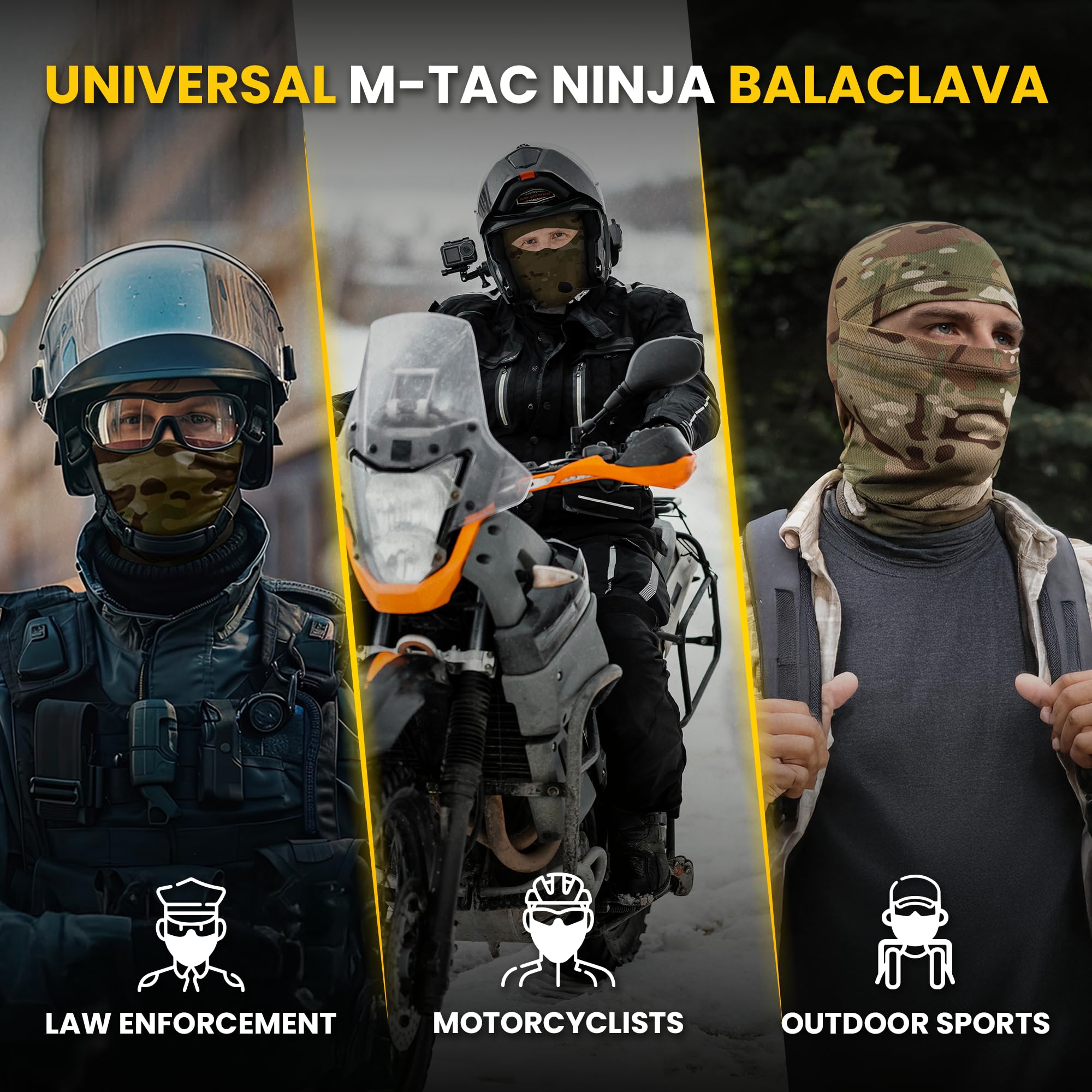 Breathable & Lightweight β M-Tac balaclava face mask for men and women is made from moisture-wicking polyester; itβs lightweight balaclava for warmer weather, suited for wearing it as a motorcycle balaclava or a full face mask for sports or as a tactical balaclava; the shiesty mask is ideal for all-day comfort and protection