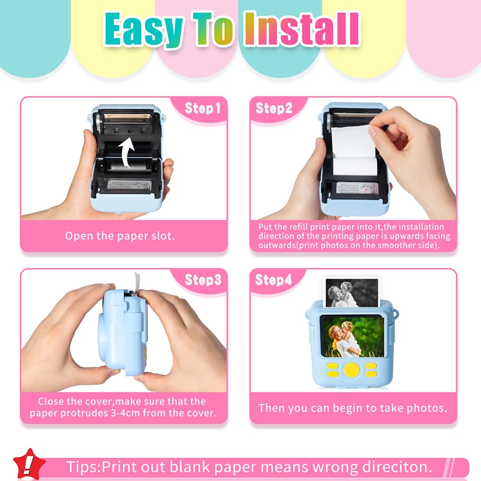 [Easy to Use]: Children can replace the paper refill by themselves easily, just pay attention to the direction when installing.Also the print paper is small and portable, making it easy to take with you when travelling to record every moment