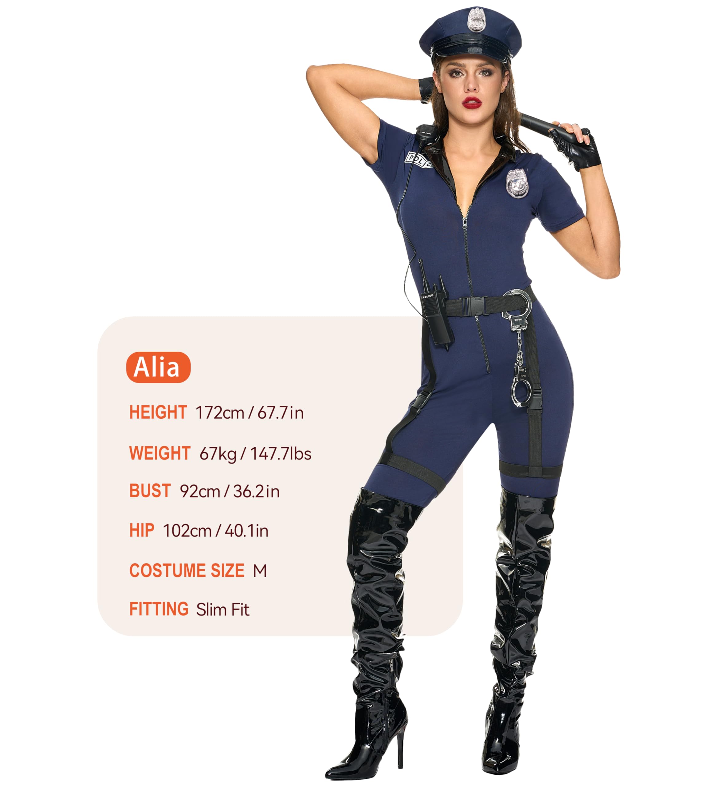 Versatile Occasions: The police jumpsuit costume set perfect for Halloween dress-ups, costume parties, Halloween night events, cosplay parties, theme parties, stage performances, and role-play scenarios. With its police officer design, the costume set allows you to embody authority, allure, and confidence