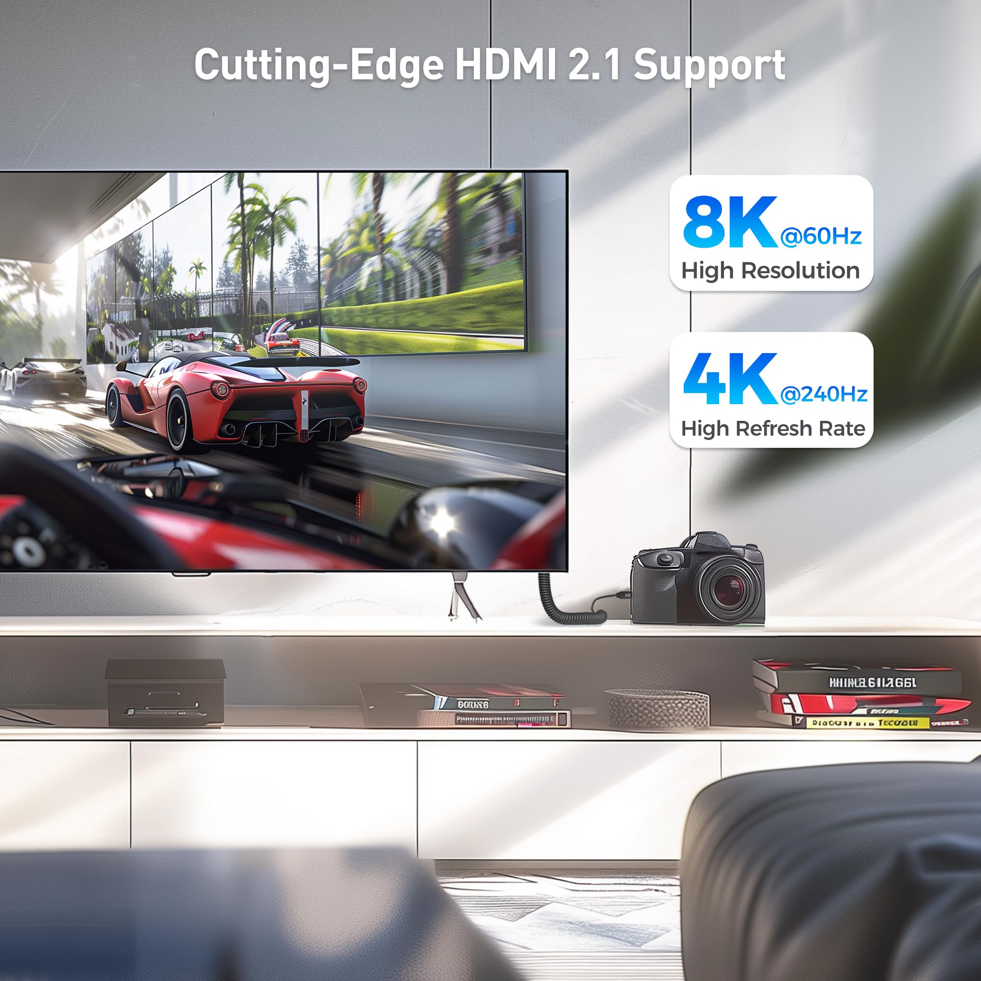 Advanced HDMI 2.1 Support: Embrace superior clarity with HDMI 2.1 specs, as this cable facilitates resolutions up to 8K, ensuring your video captures are displayed in breathtaking detail on portable screens.