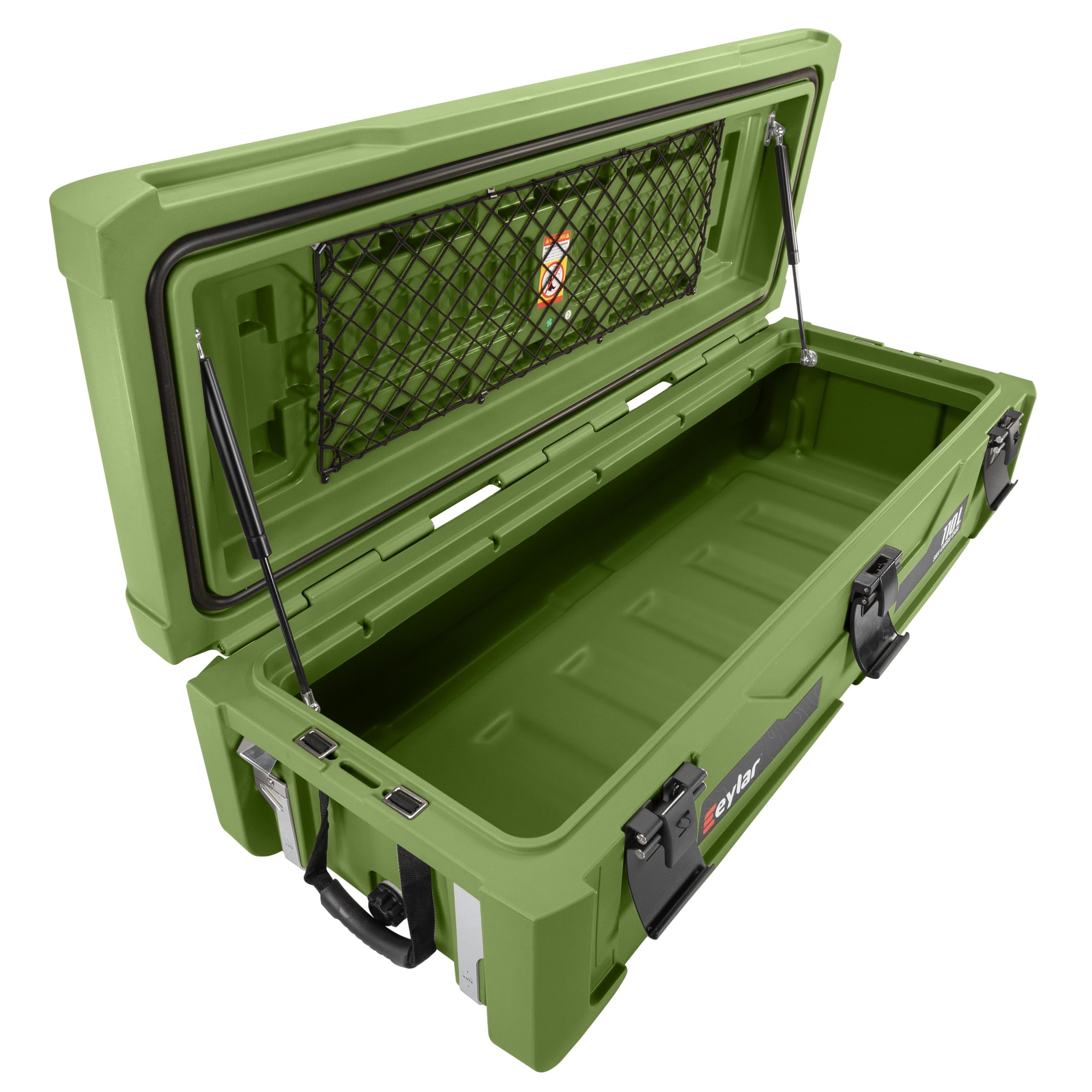 Description The Eylar SRX-110 Large Offroad Transport Cargo Case is the ultimate storage solution for outdoor enthusiasts, overlanders, and adventurers who demand rugged durability and versatile functionality. With a 110-liter capacity, this heavy-duty case is built to protect your gear in the toughest environments, whether you’re navigating rocky trails, camping deep in the wilderness, or hauling essentials on a long road trip. Its reinforced construction and lockable latches ensure your equipment stays secure, while the rubber gasket lining provides exceptional waterproof protection, keeping your contents dry in any weather. The gas strut lid makes opening the case effortless, holding it open for easy access to your gear. Designed for multi-purpose storage, the SRX-110 is not just for tools and camping gear—it’s also an excellent food and dry goods storage solution. The included internal tray and divider help keep items organized, whether you’re packing cookware, non-perishable foods, or fresh ingredients for a weekend in the wild. The built-in drain system makes it easy to clean, making it perfect for use as a makeshift cooler when packed with ice. Plus, dual bottle openers add a touch of convenience for relaxing around the campfire. For those who prioritize safety and visibility, the SRX-110 comes with optional reflective stickers, making it easy to locate your cargo case in low-light conditions. The stackable design allows for efficient storage in your vehicle, on a roof rack, or in your garage, maximizing space without the risk of cases sliding off. Whether you’re heading off the grid, tailgating with friends, or simply looking for a reliable, all-weather transport case, the Eylar SRX-110 Large Offroad Transport Cargo Case is built to handle it all.