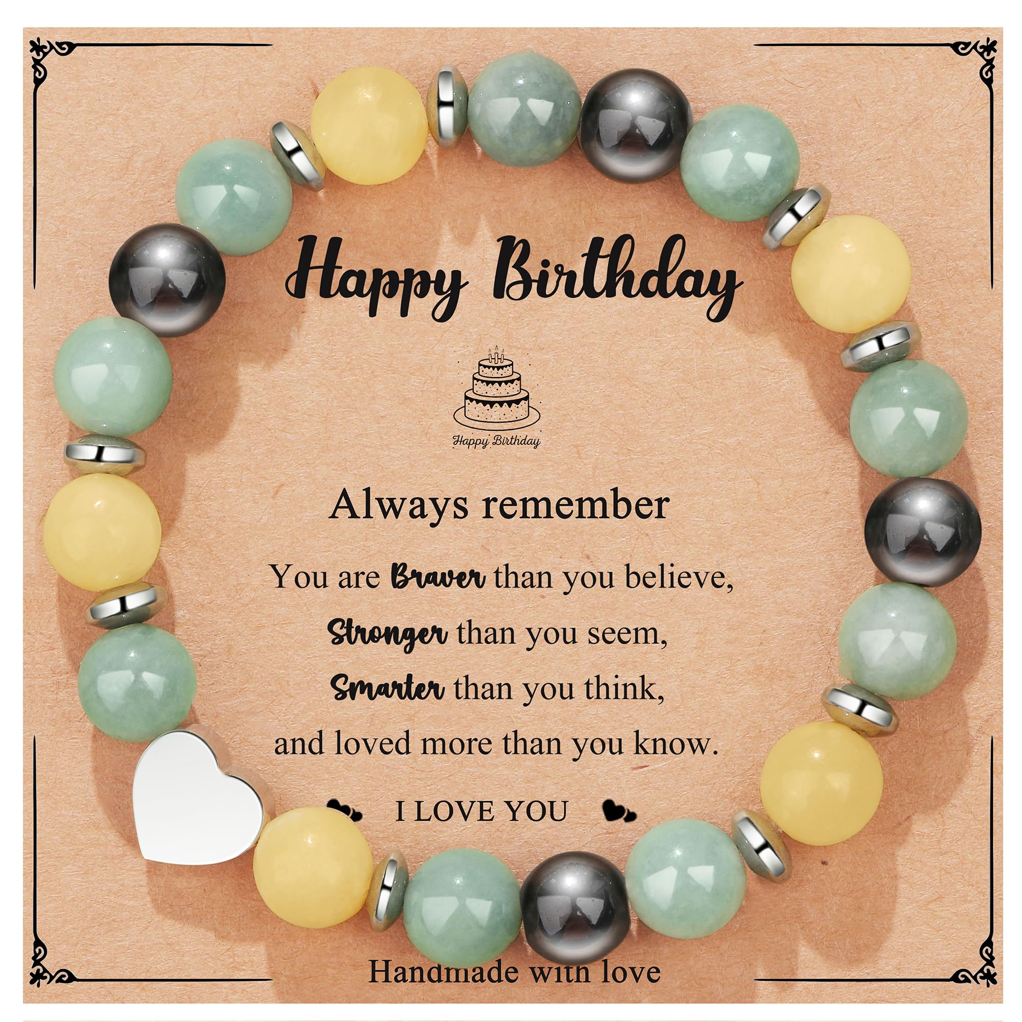 【Happy Birthday Bracelet】-This beaded bracelet is packaged in a pretty jewelry box, comes with a meaningful birthday card, ready for giving. Surprises her with this lovely bracelet and birthday card. This stretch bracelets are great gifts for women mom daughter granddaughter sister friends teacher grandma girlfriend wife colleague.