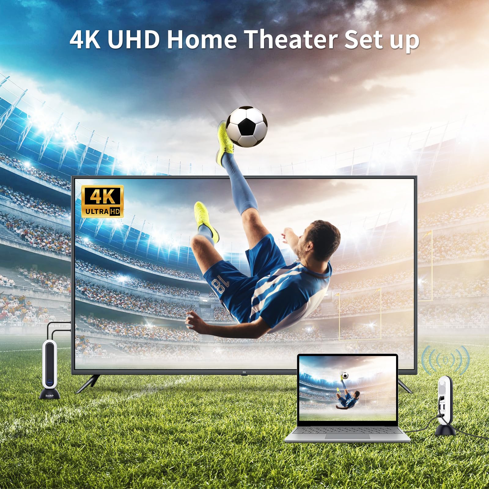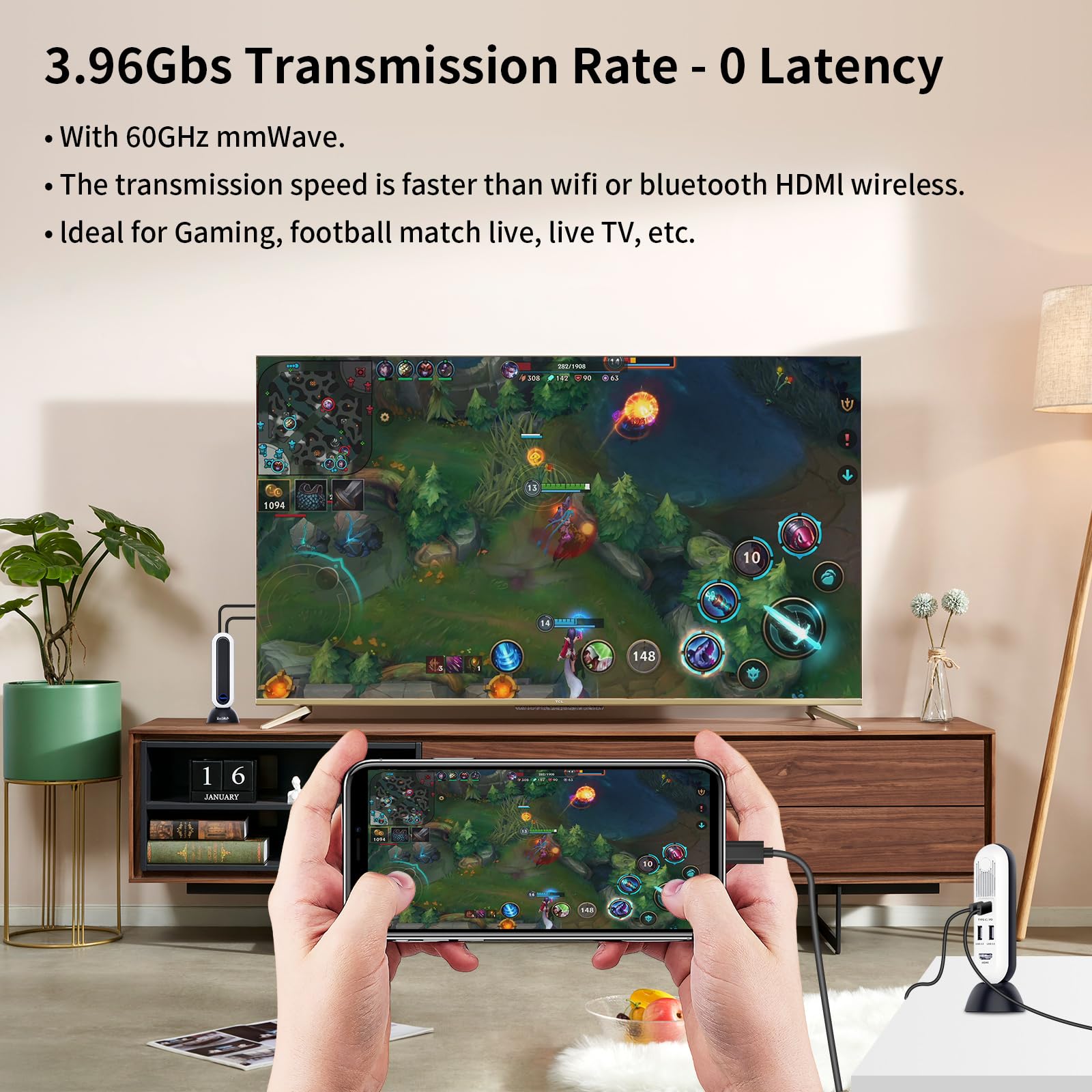 【No Latency for Live Streaming & Gaming】: The wireless HDMI transmits in 60GHz with a ≤2.5ms latency (real-time response), this 0 latency wireless hdmi extender kit for gaming streams 4K@30Hz/1080P@120Hz video/audio with ease, streaming the smooth gaming, high-efficiency live, presentation on a big screen
