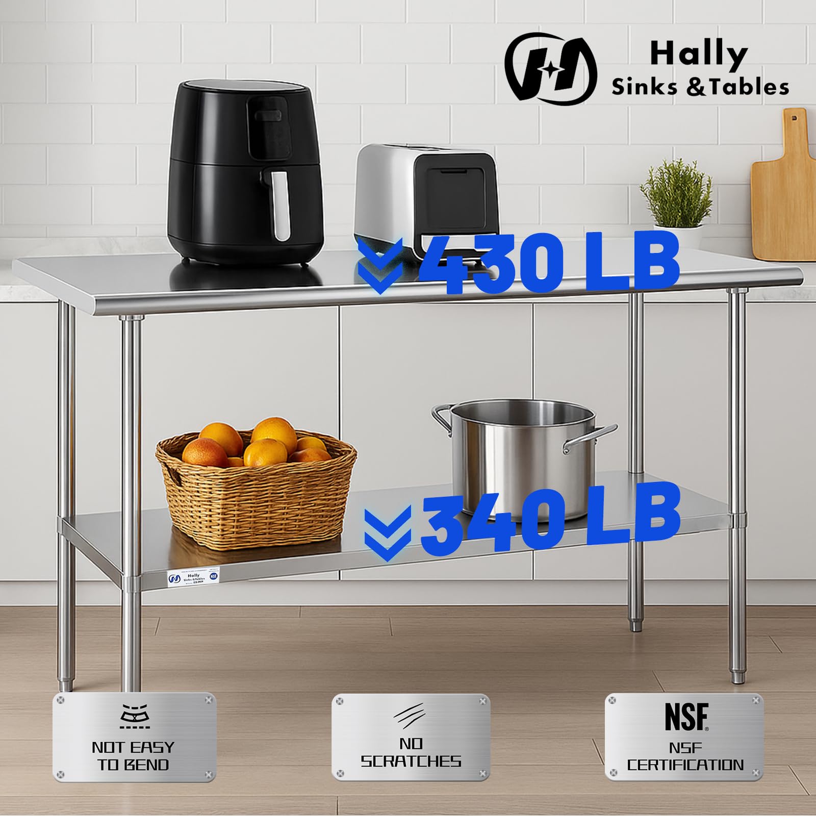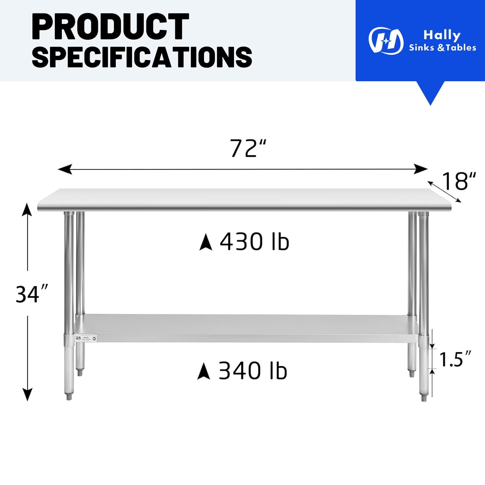 Large & Practical Storage**2 layers: 430 lb. top shelf weight capacity; 340 lb. undershelf weight capacity, dimension 18 x 60 inches, offer you enough storage room for microwave oven, kitchen utensils or any other tools