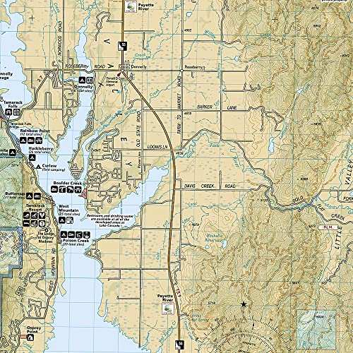 • Waterproof • Tear-Resistant • Topographic Map Centered on Payette Lake and the resort town of McCall, the map covers the western half of Payette National Forest and the North Fork Payette River, the northern section of Boise National Forest including Warm Lake and Vulcan Hot Springs, the South Fork Salmon River, and Lake Cascade and the town of Cascade. This mountainous region of lakes, ponds, rivers, streams, wetlands, and wide and narrow valleys features extensive motorized and non-motorized trails and recreation areas for year-round adventures on land, water, and snow, located just over 2 hours from Boise. Opportunities abound for hiking, fishing, camping, hunting, skiing, and snowmobiling across the region's federal and state lands. Multi-use recreation features on the map include big game management units, ranger district boundaries, research natural areas, wilderness study areas, as well as the boundaries and amenities of state lands including Ponderosa State Park and Lake Cascade State Park. Trails of all types are meticulously mapped, classified, and labeled, including the Lava Ridge National Recreation Trail, a 60-mile section of the Idaho Centennial Trail, and hundreds of miles of groomed winter snowmobile routes. Natural features and landmarks are clearly mapped and labeled, and visitor amenities are shown for all developed camping and recreation sites, including campsite capacities, water put-ins and take-outs, winter activities, hot springs, lookout towers, restrooms, food, gas, lodging, and picnic tables. The map includes the towns of McCall, Cascade, Council, New Meadows, and Donnelly and the historic settlements of Burgdorf Hot Springs, Warren, and Warm Lake, the Brundage Mountain and Tamarack ski resorts, and the north end of the Payette River Scenic Byway. All trails are marked and labeled with trail mileages and uses, and elevations at junctions, with steep slopes clearly indicated. Road mileages for navigating through the region are also marked and labeled to help estimate travel times. The map margins include fishing, hunting, and motorized vehicle regulations, plus contact information for local, state, and federal land and resource management agencies and Leave No Trace guidelines and ethics. Every Trails Illustrated map is printed on "Backcountry Tough" waterproof, tear-resistant paper. A full UTM grid is printed on the map to aid with GPS navigation. Every map purchase helps support the National Geographic Society, an impact driven, nonprofit organization with global reach that uses the power of science, exploration, education, and storytelling to illuminate and protect the wonder of our world. Other features found on this map include: West Mountains, Grass Mountains, Salmon River Mountains, Grass Mountains, Long Valley, Secesh River, Weiser River, French Creek, Little Salmon River, Thunderbolt Mountain, Hard Butte, Lava Butte, Bear Basin, Lava Lakes, Carey Lakes, Crestline Trail. Map Scale = 1:75,000 Sheet Size = 25.5" x 37.75" Folded Size = 4.25" x 9.25"