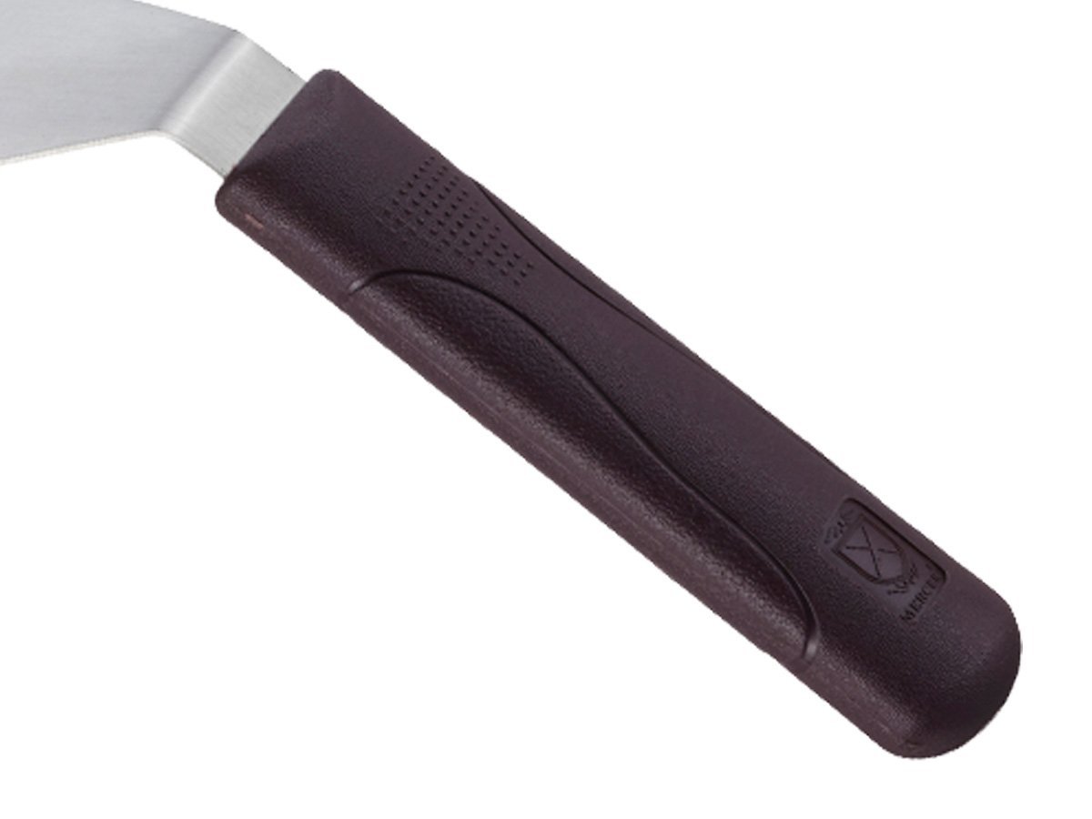 The unique formulation of these handles absorbs 50% less heat than standard polypropylene handles, remaining cooler to the touch longer. The handles also safely withstand temperatures up to 450°F (232°C). Precision ground stainless steel blades provide the perfect combination of flexibility and stiffness.