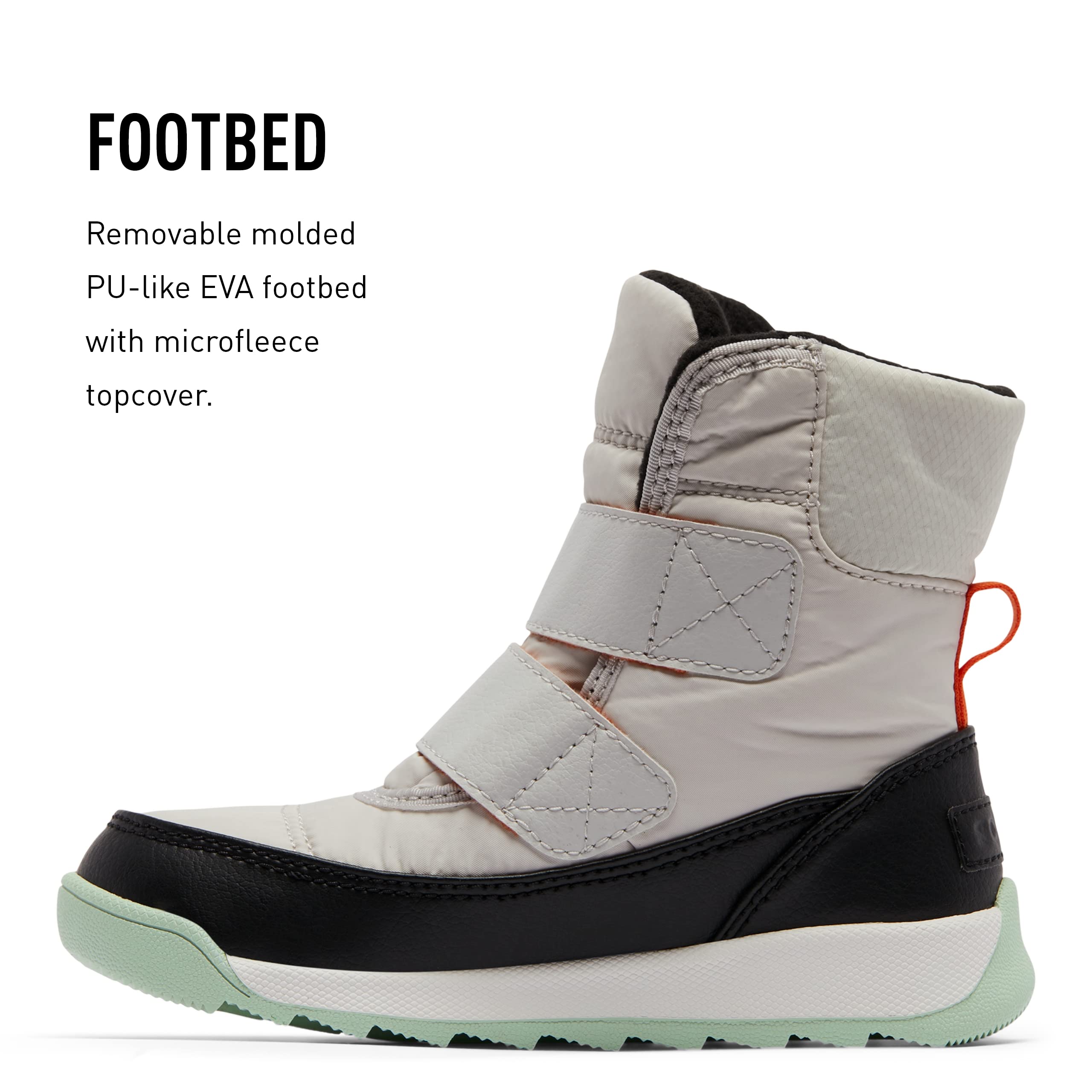 Function & Comfort: Waterproof construction with removable, molded, PU-like EVA footbed with microfleece top cover; molded-rubber outsole construction improves traction
