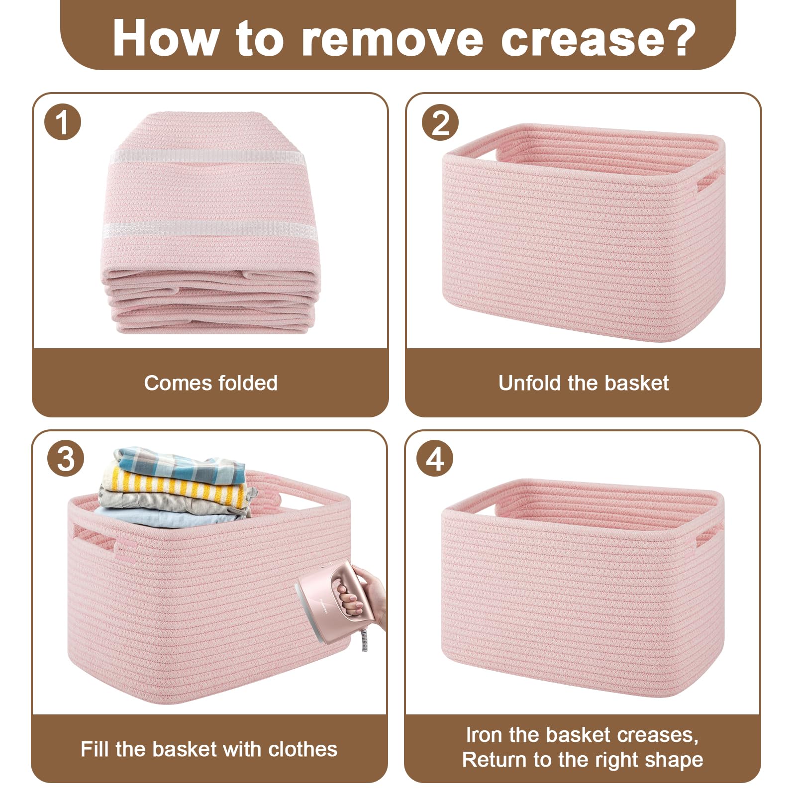 NOTE: The woven baskets is folded for shipping, It will turn back to its elegant shape quickly by filling it with towels or blankets, and ironing is a great idea to regain the creases. Also, you can fold it into a flat shape for easy storage when not in use