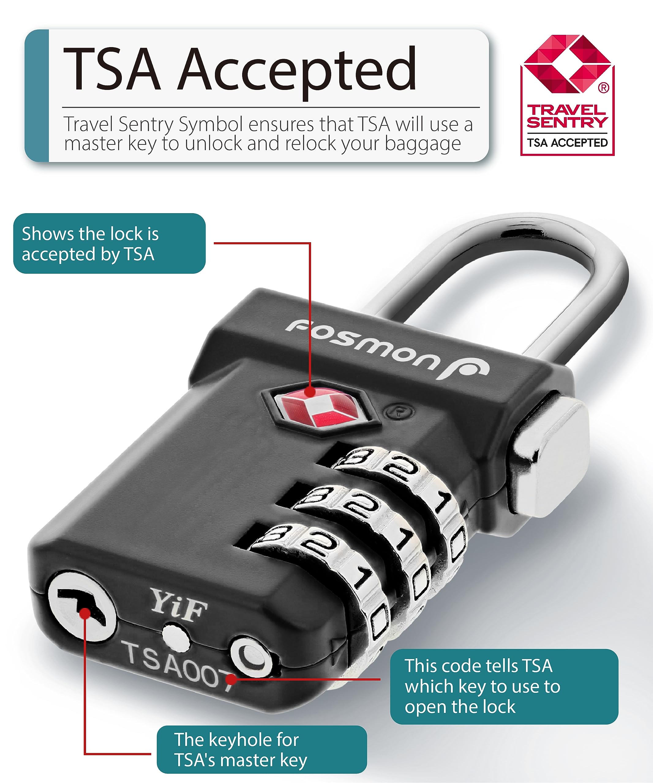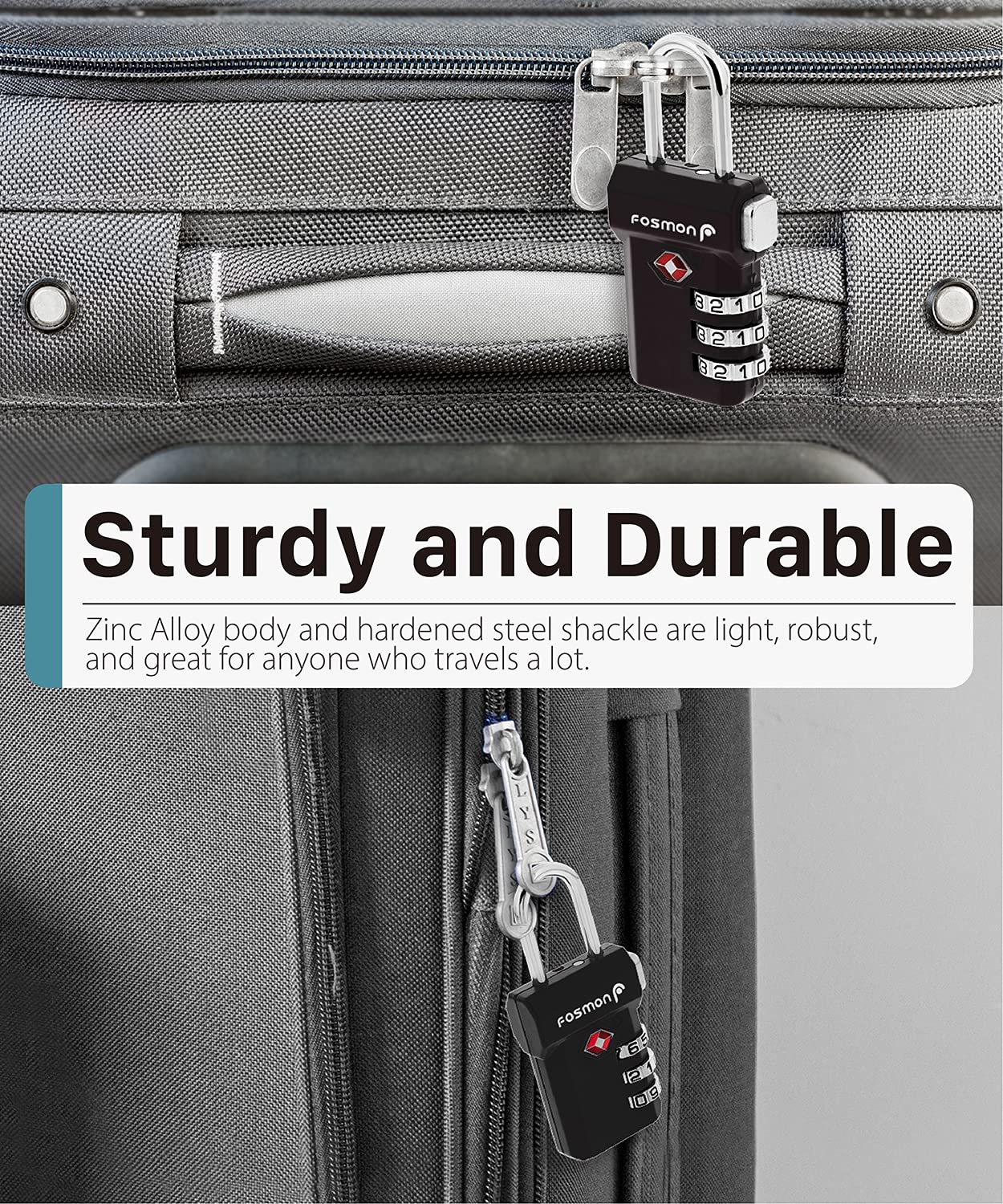 [TSA ACCEPTED LUGGAGE LOCKS] The Fosmon TSA lock allows your luggage to be inspected without damage to the lock. The TSA agent will open and relock your luggage after inspection, giving you piece of mind for the whole trip.