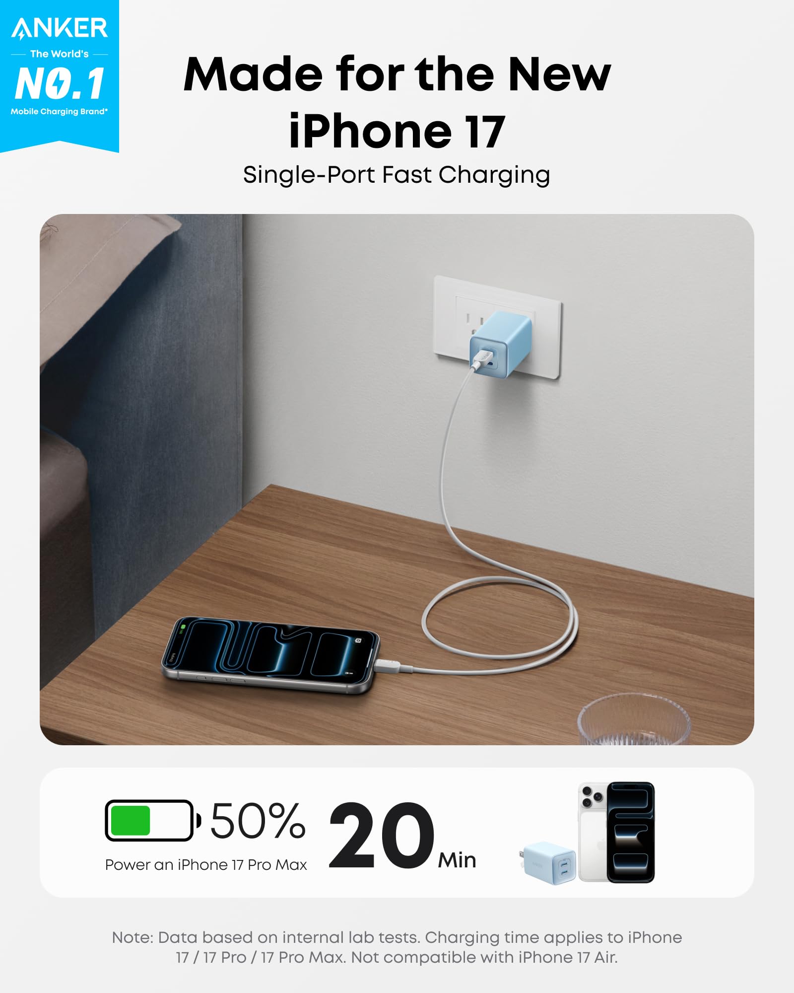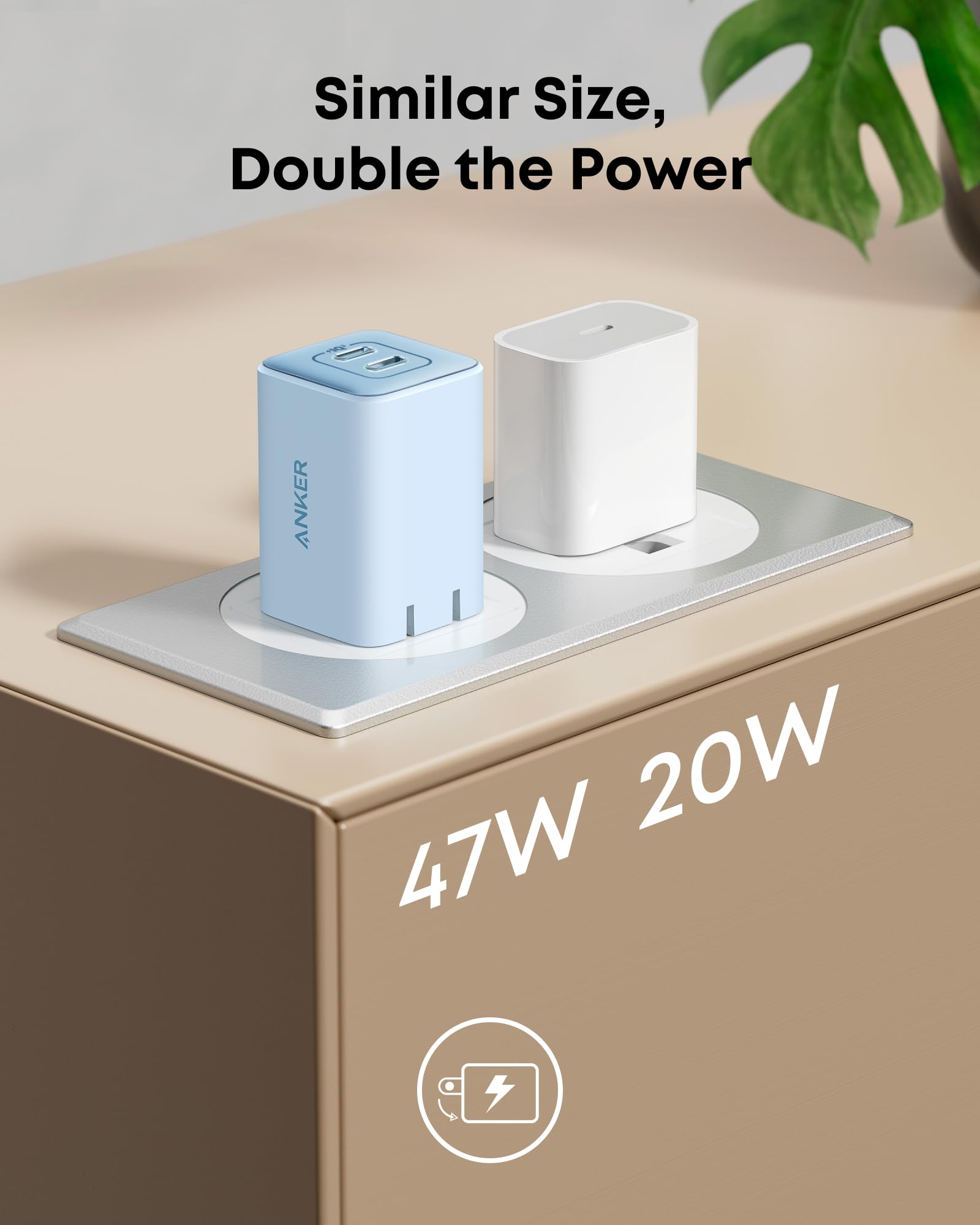 Small Yet Powerful: Get 47W of power and charge 2 devices from a charger that's roughly the same size as an original 20W charger.