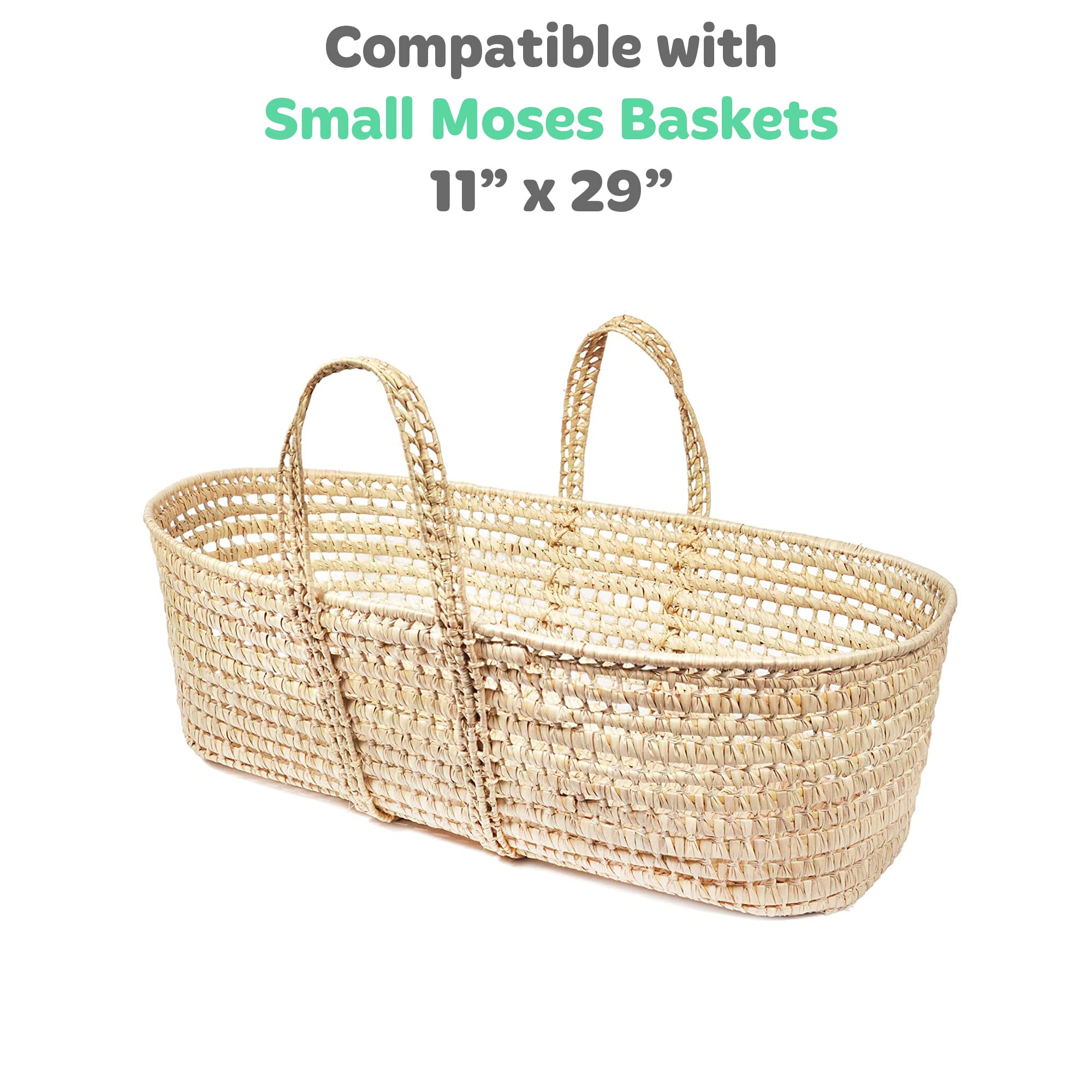 Joey + Joan Moses Basket Sheets – The Custom Fit for a Peaceful Nights Slumber SKIP THE BAWLING & LET THESE bunny-soft sheets lull your baby to sleep. Crafted from 100% Jersey Cotton, moms who switch to these moses basket fitted sheets say they notice a major difference in how quickly baby falls asleep, how peacefully they stay asleep, and how joyfully they awake. THE SAFEST COVERS – FROM THREAD TO FINISH - Guaranteed 100% Harmful Substance Free - Meets Global OEKO-TEX Certified Standards - Created for soft, squishy, ultra-sensitive baby skin - Polyester Free - Allergen Free THE EASIEST MAINTENANCE – NO LATE NIGHT LAUNDRY SESSIONS Because late night blowouts are virtually guaranteed, we bundle each beautiful moses basket sheet set into a 2 pack, so you can easily pull one off, put the second on, and worry about the laundry in the morning. More so, they are machine washable and dryer safe! THE SILKIEST SMOOTHNESS – BREATHABLE & SWEAT-FREE Hand selected, superior strength threads knitted into the most breathable, comfy fabric you can imagine. Exactly what you'd want to sleep on yourself to indulge in a beautiful nights sleep (we're working on that mama!) THE PERFECT FIT – CUSTOM TO BABY'S MATTRESS Fitted down to the millimeter, these adorable 11 x 29 oval bassinet sheets are designed to be compatible with - Small Moses Basket UNRIVALED DURABILITY – LIFETIME GUARANTEED From the fabric to the BABY SHOWER READY packaging, we pour our heart into making the safest, longest lasting, most beautiful baby sheets on the market; sheets you'll feel joyful giving and receiving. Rest assured these baby sheets rival the quality, softness and durability of any you'll find at high end baby boutiques, or we'll extend a full, prompt refund. Your happiness is guaranteed. ADD TO CART now!