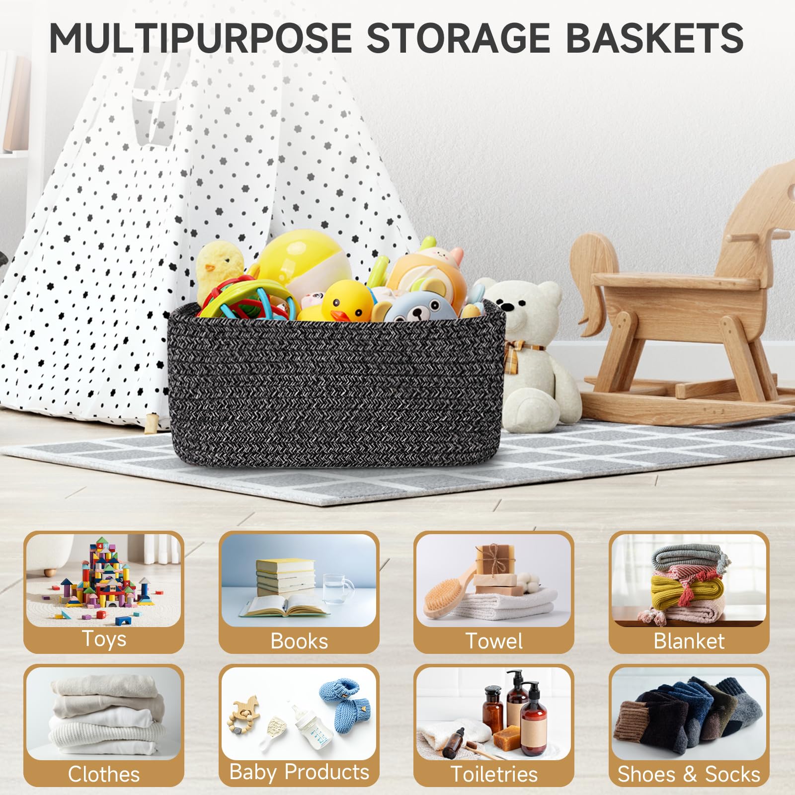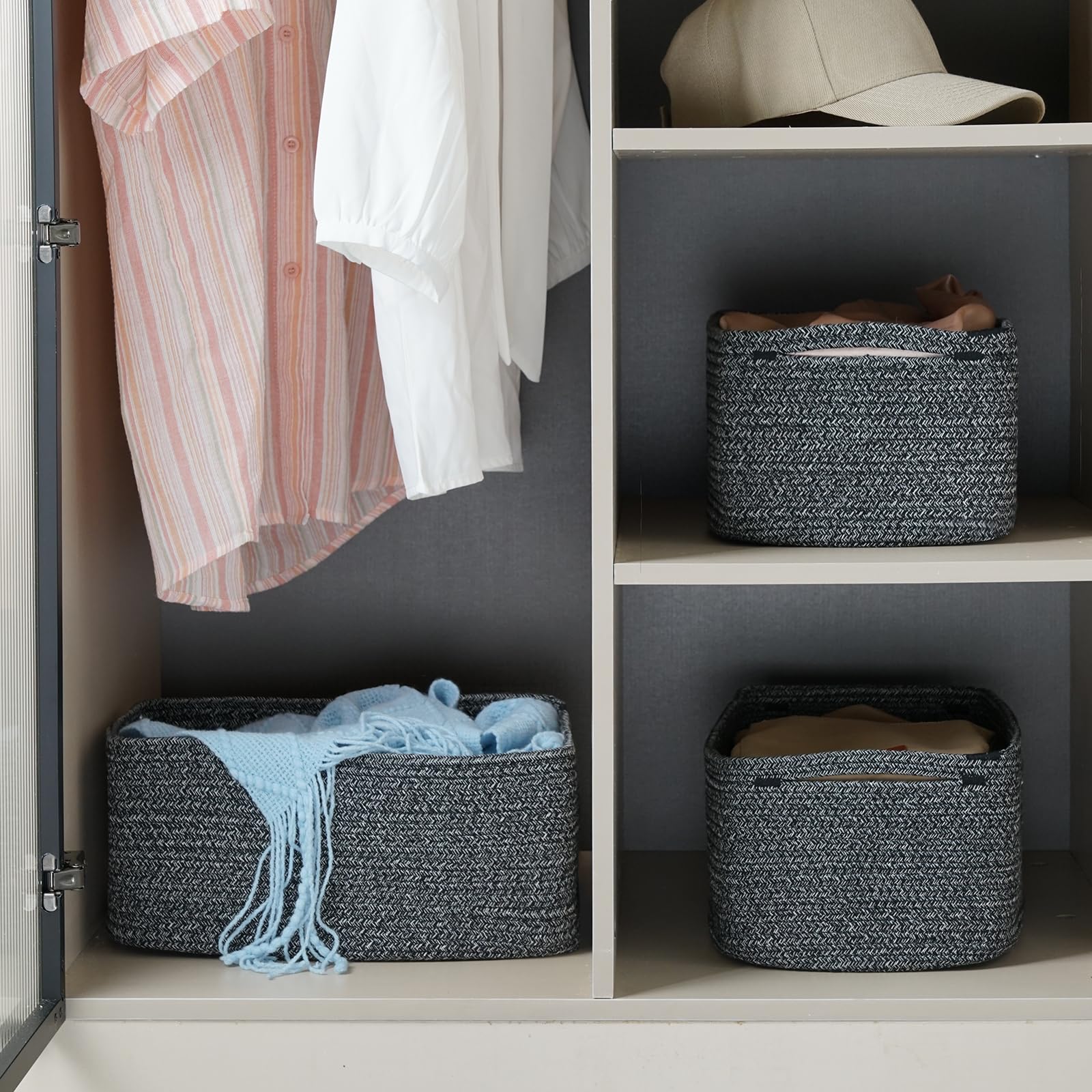 【Home Storage】We specially selected classic colors for these rope basket bins. Our rope baskets can be used as fabric baskets and look great in any room. This cube rope storage basket will enhance any room or decor in your home.