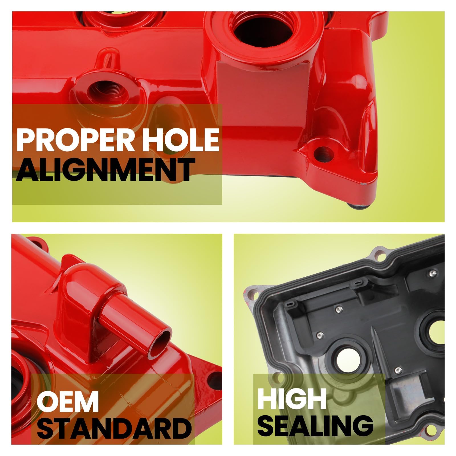 ALUMINUM VALVE COVER KIT: Our engine valve cover kit is made of aluminum material to solve the issues of leakage, crack and low power performance. Note:3 Critical Pre-Installation Checks: Clean Contact Surfaces, Verify Torque Specifications, Give It a Vacuum Test
