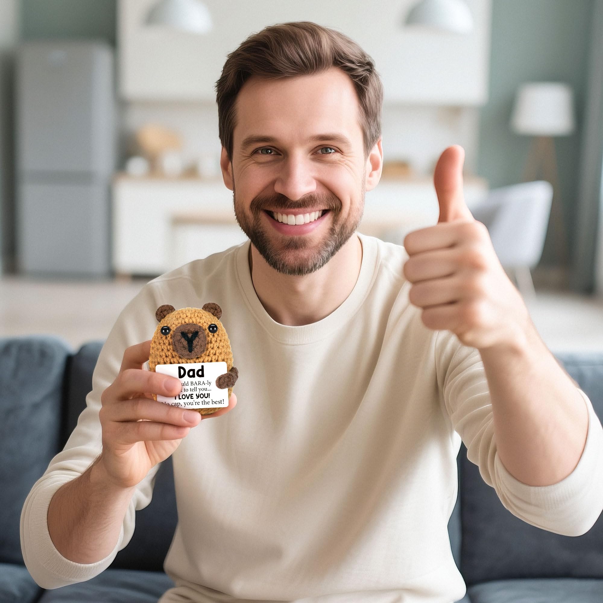 Christmas Stocking Stuffer or Secret Santa Gift for Dad. This capybara makes a perfect Christmas gift for dad who has everything. Tuck it into a stocking or leave it under the tree—it’s a handmade, meaningful keepsake that reminds him how much he’s loved. The funny message and compact size make it a great option for white elephant exchanges or as a sentimental dad Christmas gift from kids. Ideal for dads who love holiday cheer, dad jokes, and surprises with heart.