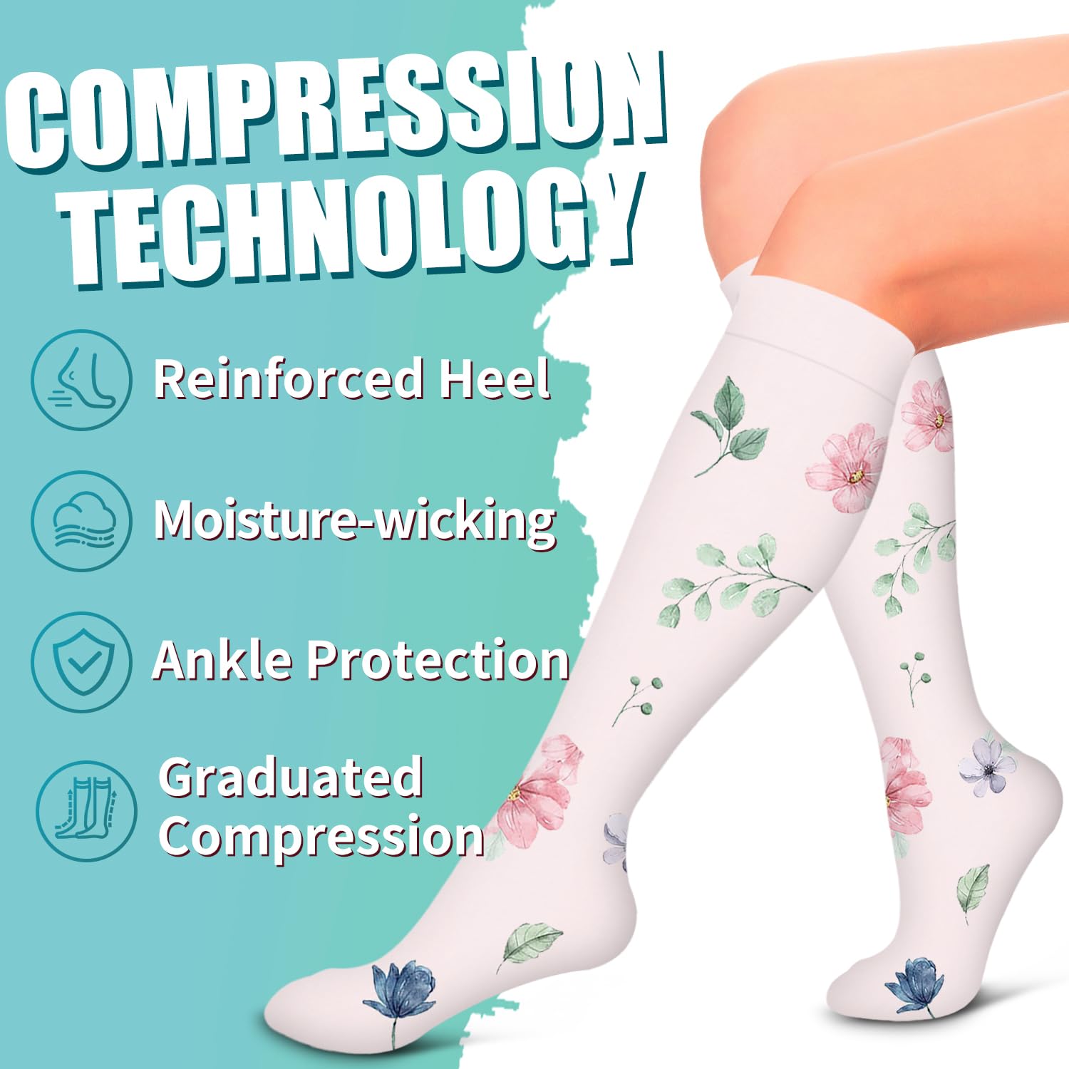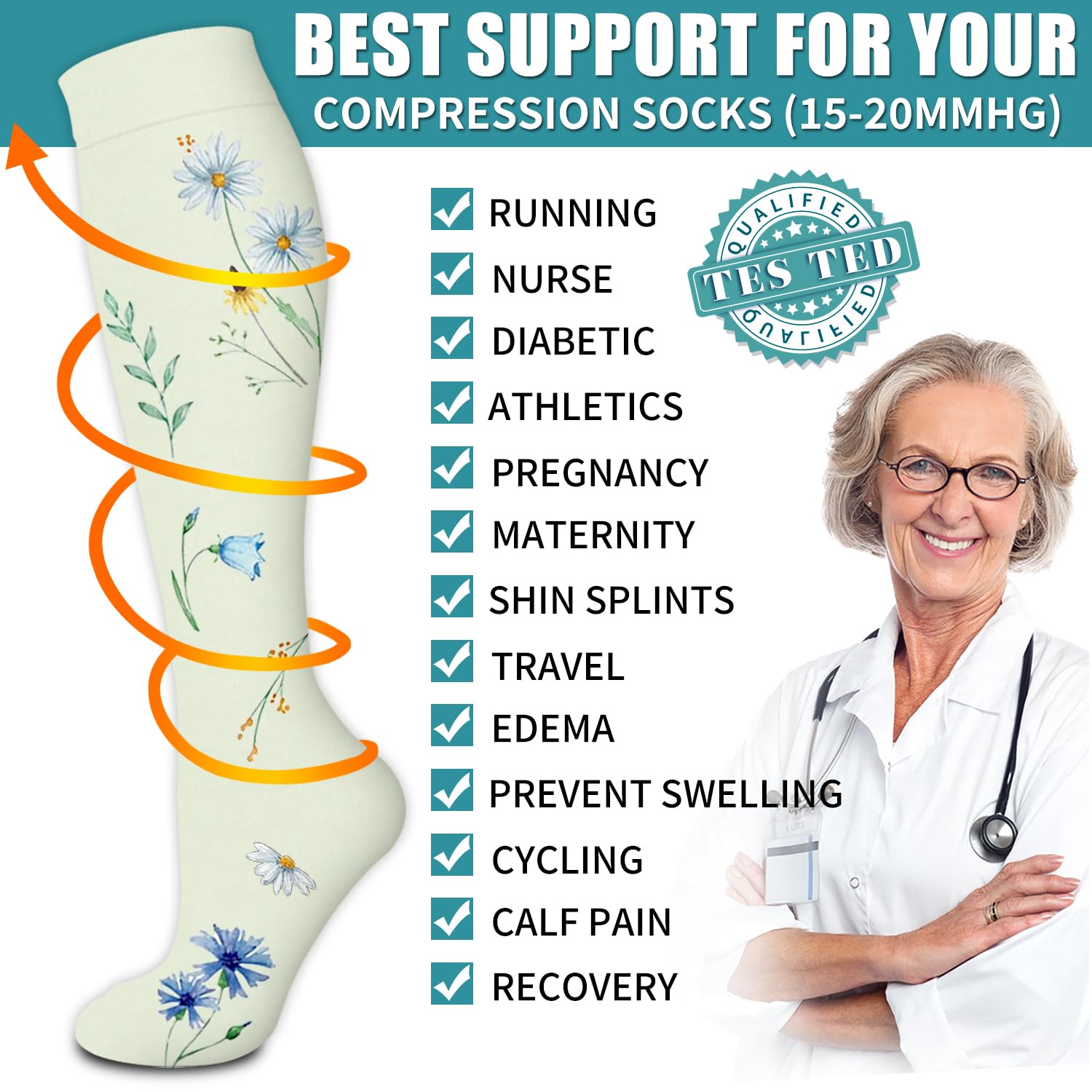 AMAZING EFFICACY-With a unique compression level that isn't too loose or too tight,it means you can wear our compression socks for women all day long comfortably.As they gently constrict the tissues and oxygenate the blood,they move waste fluids out,promoting ample circulation.Remove stress and stimulate every cell,reduce fatigue,soreness,cramping and prevent Varicose veins at the same time Ensure the healthy functioning of your circulatory system.Keep your legs feel fresher and more energized.