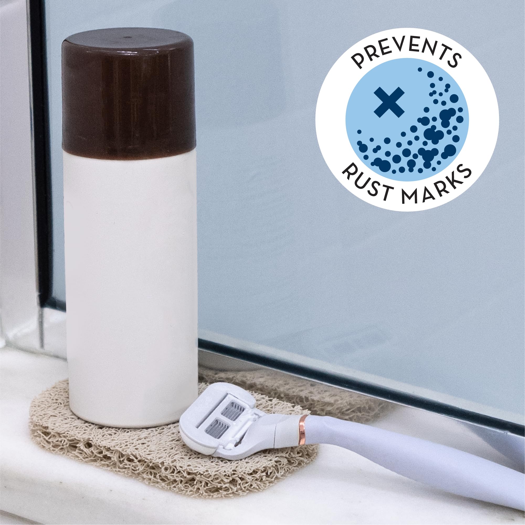 Place at the sink or in the bath or shower for a secure hold on shelves; try using under personal care products like shampoo, conditioner, and shaving cream bottles to keep shelves cleaner