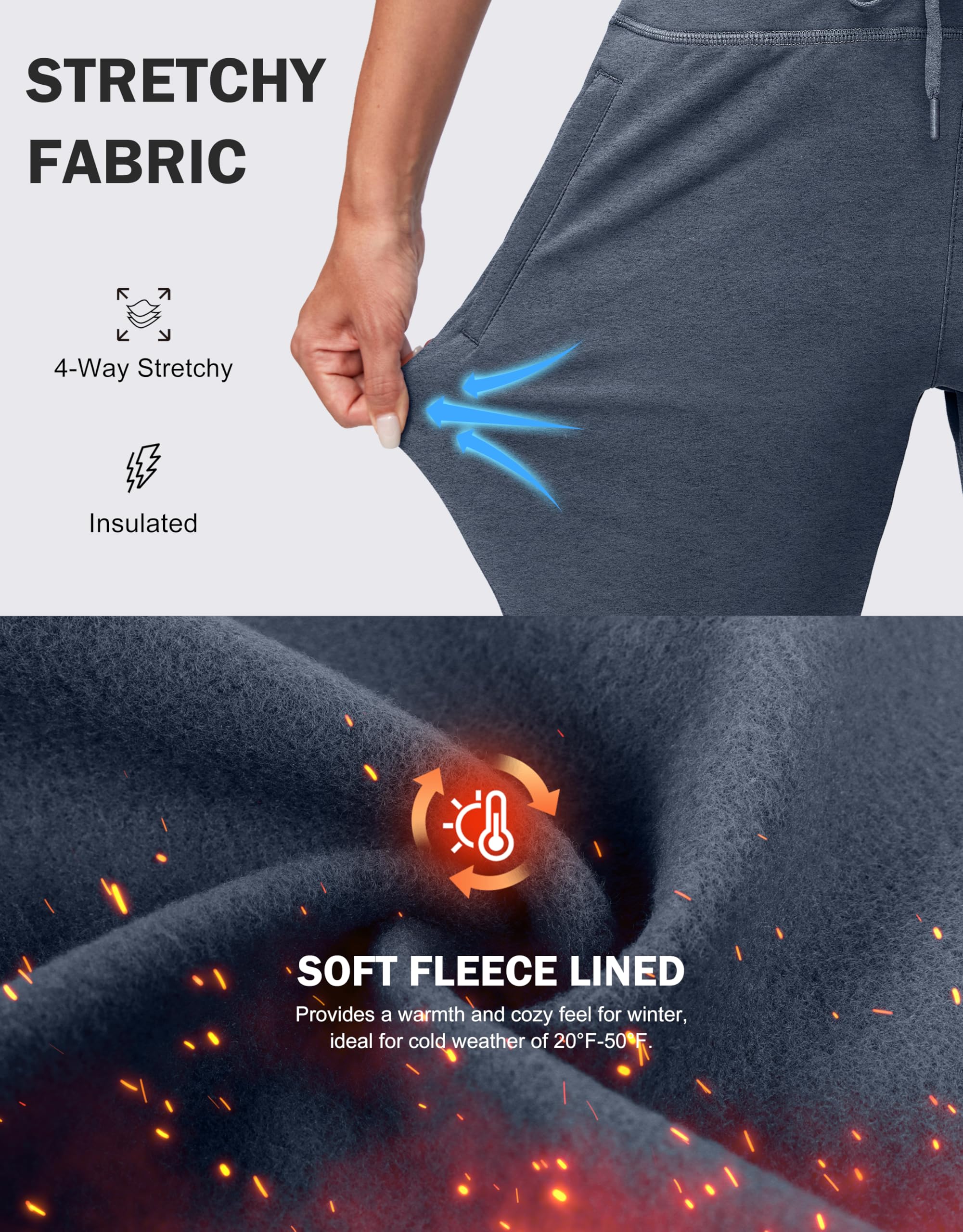 Warm Fleece Lining - Fleece lined joggers are crafted with thermal fabric, make you feel soft and warm on the skin, ideal for cold weather under 30°F
