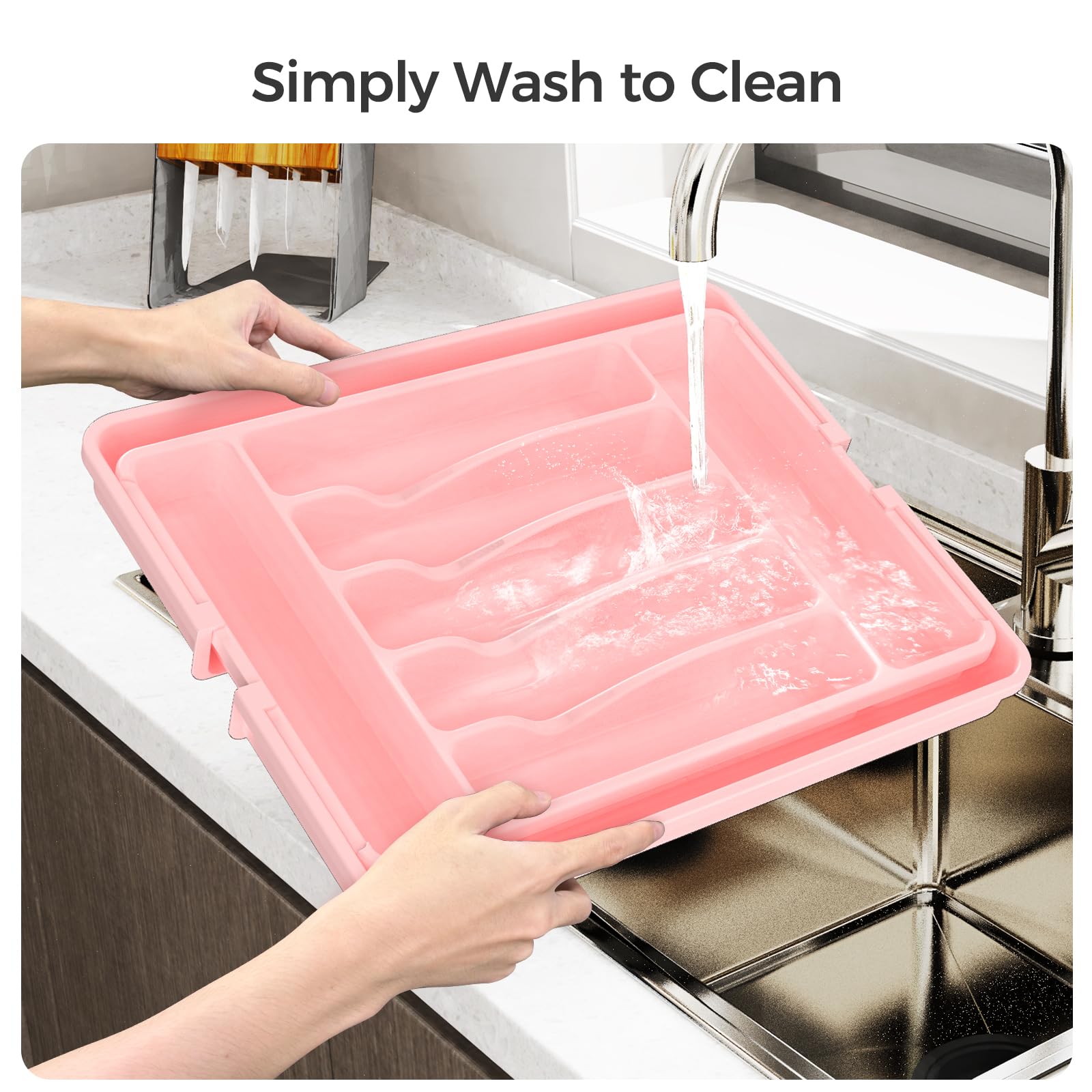 Ukeetap Extra Large Expandable Silverware Organizer, BPA-Free Food-Safe Cutlery Flatware Organizer, Kitchen Utensil Drawer Organizer, Adjustable Silverware Holder for Spoons Forks Knives, Pink
