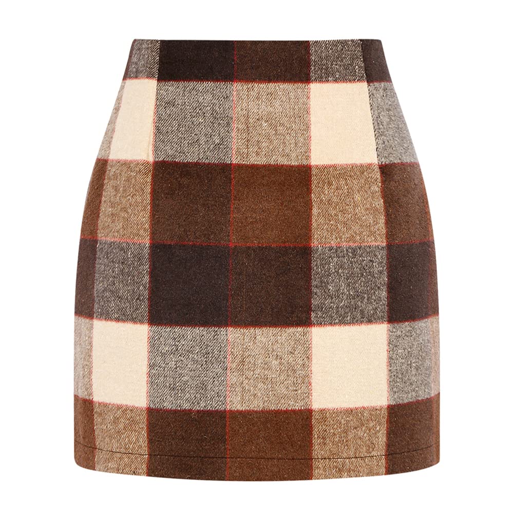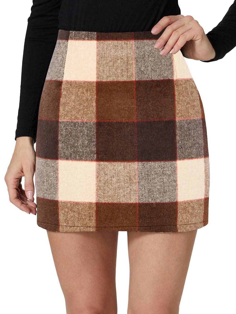 Women's plaid skirts 2023 fall winter wool high waist bodycon pencil mini skirts for ladies/teens/juniors.