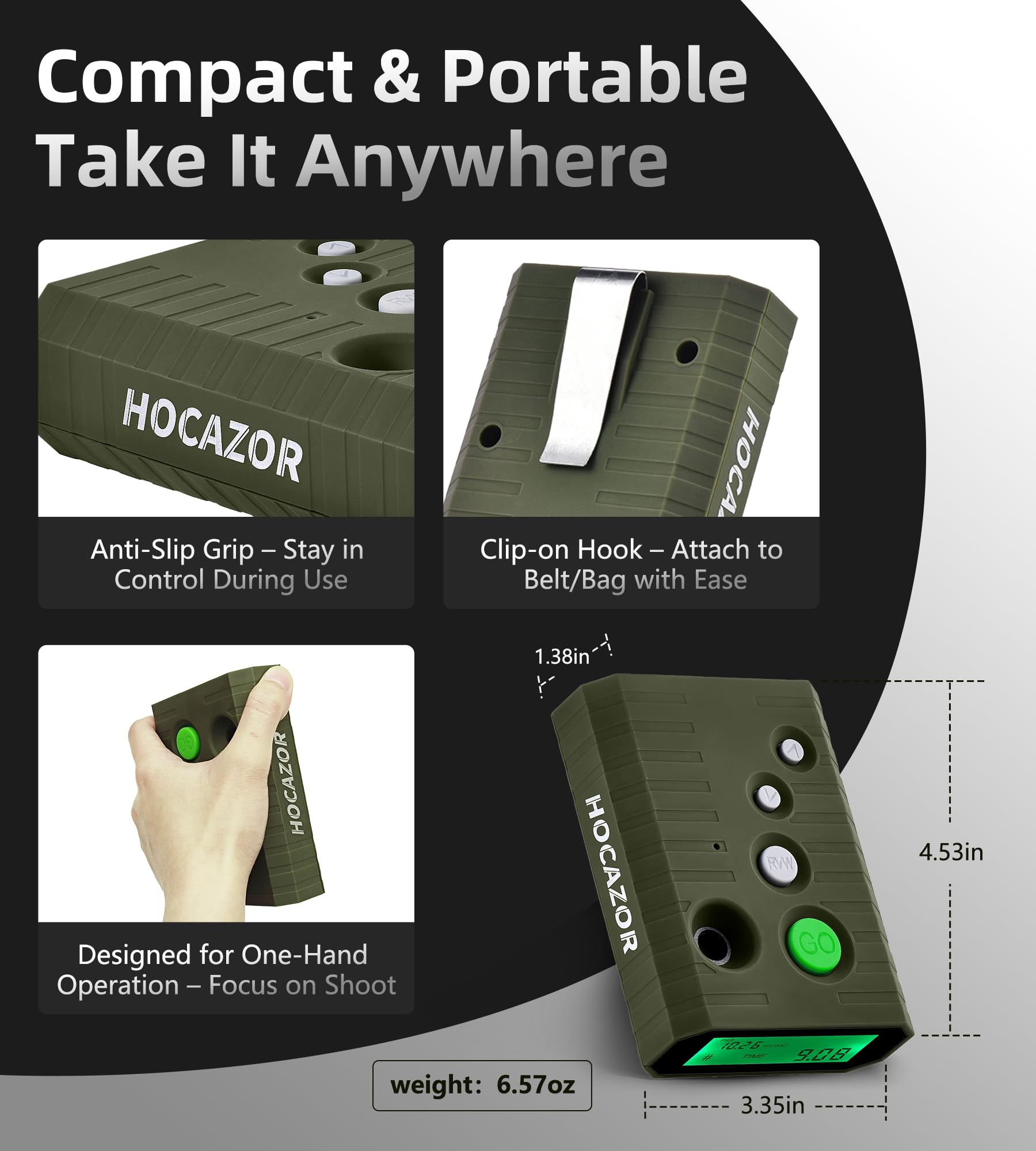 New loud buzzer: Hocazor shot timer use the newly upgraded built-in loud buzzer, effectively alert shooters to shooting practice
