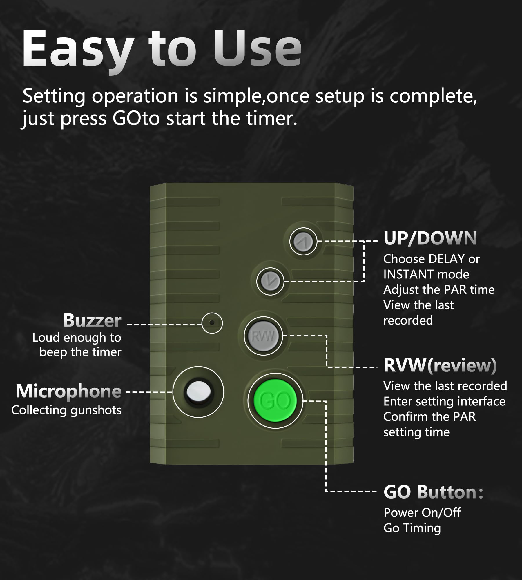 4 Versatile Timing Modes: Choose from 4 timing modes - Instant, Delay, Par+ Instant, Par+ Delay. Used in a variety of shooting training settings, giving you the ability to tailor the timer to your shooting needs. Suitable for shooting timing drill, dry-fire practice, and range sessions or shooting competitions