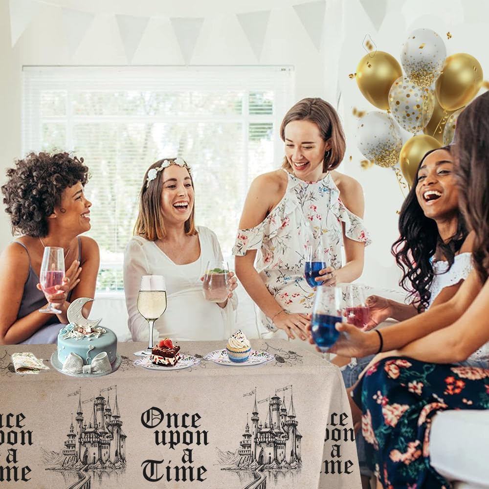 Once Upon A Time Decorations: The story book tablecloth is made of PE materials and eco-friendly ink, safe, non-toxic, durable, waterproof and oil resistant, and can be used repeatedly or once. It is the perfect choice for baby shower birthday party
