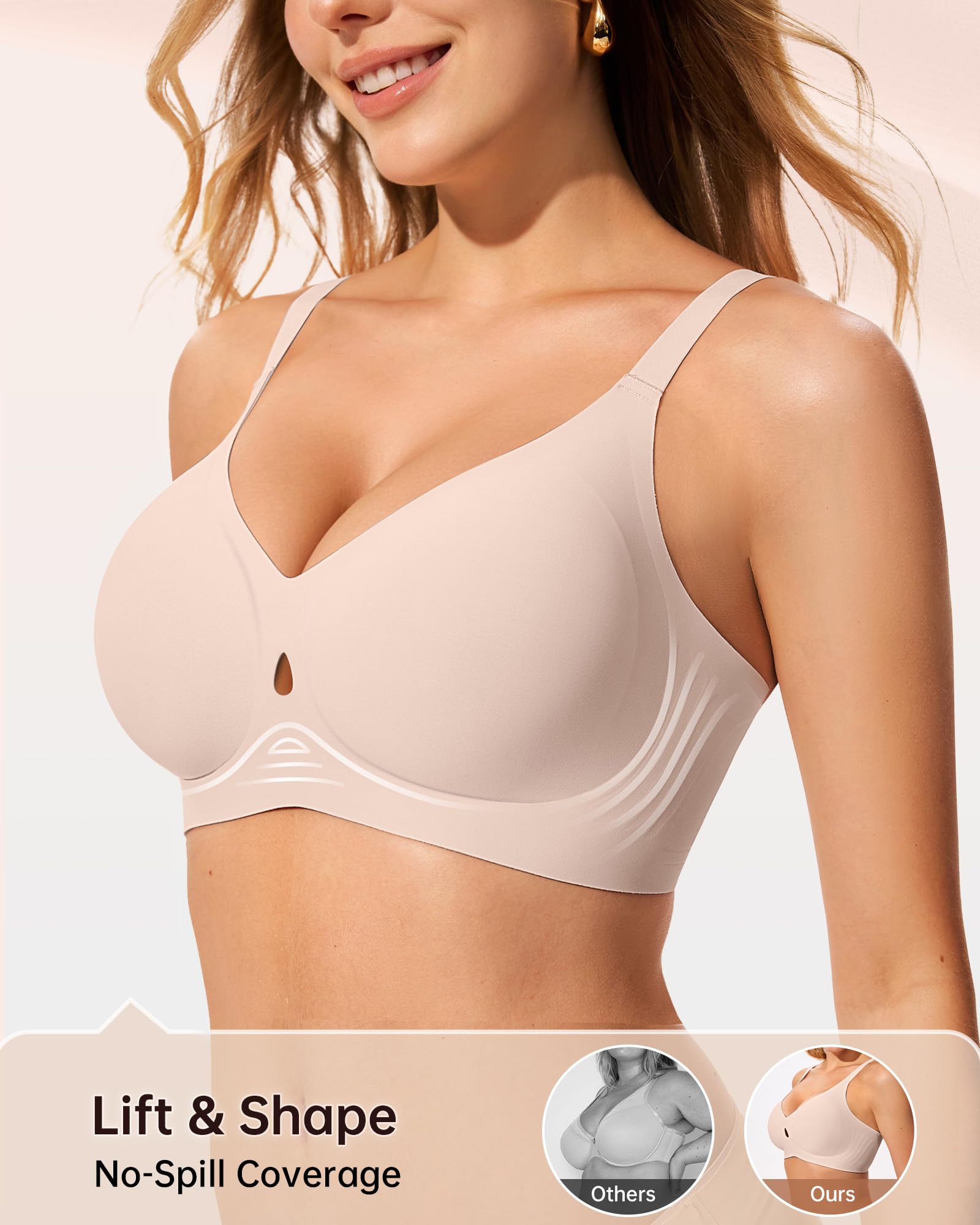 【Breathable Hollow Water Drop Design】Delicate water drop cutouts combine breathability and elegance in LetsJoli wireless bras for women, creating a comfortable experience while enhancing comfort and fit. The breathable hollow cutouts enhance airflow, keeping you cool and dry during extended wear and improving overall comfort