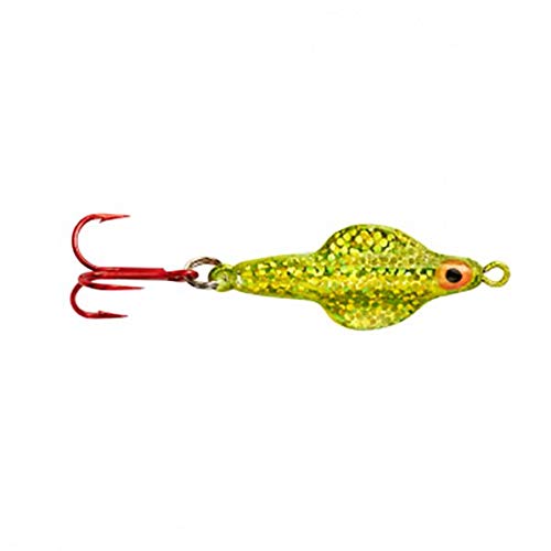The attention-grabbing brass rattle and a life-like baitfish scale pattern makes this lure a very potent ice-fishing spoon