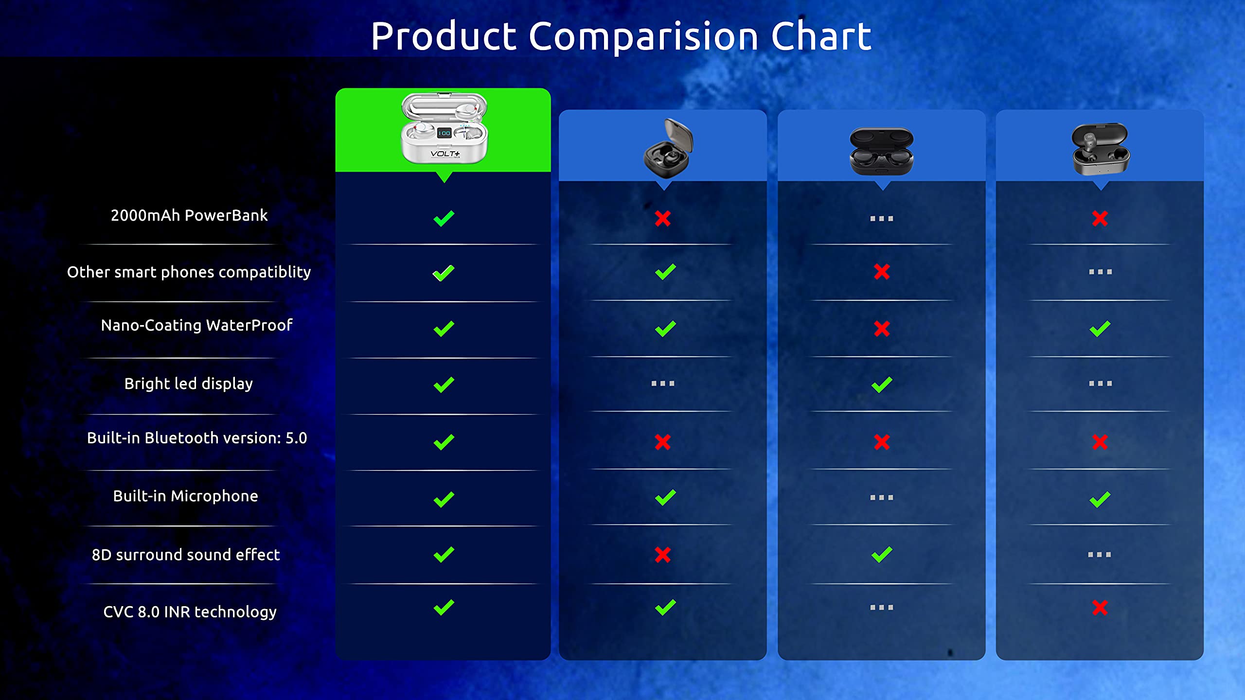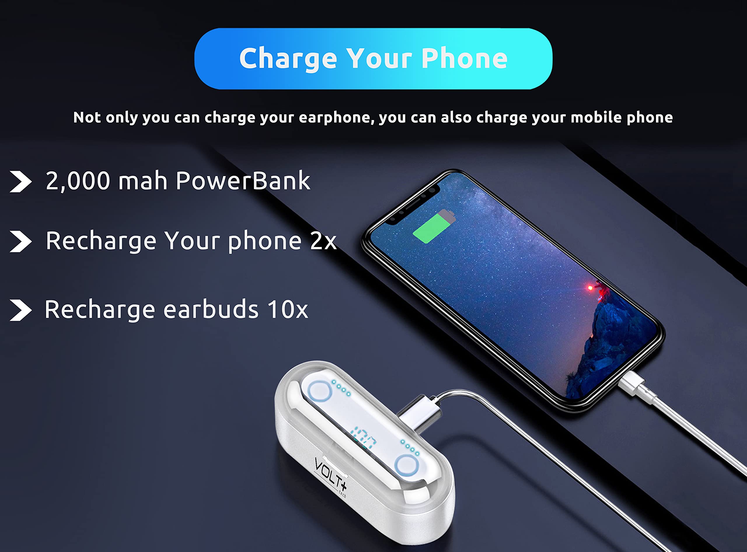 ⚡【WHAT YOU GET】: You will get a 2,000Mah Enabled Powered Case with Recharges 24h-26 hours of Life for your Portable Bluetooth Volt Plus Tech Version F9 TWS earphone with a Power Pack Storage Gift box, and the charging bank headset can charge for over 24 hours of use.