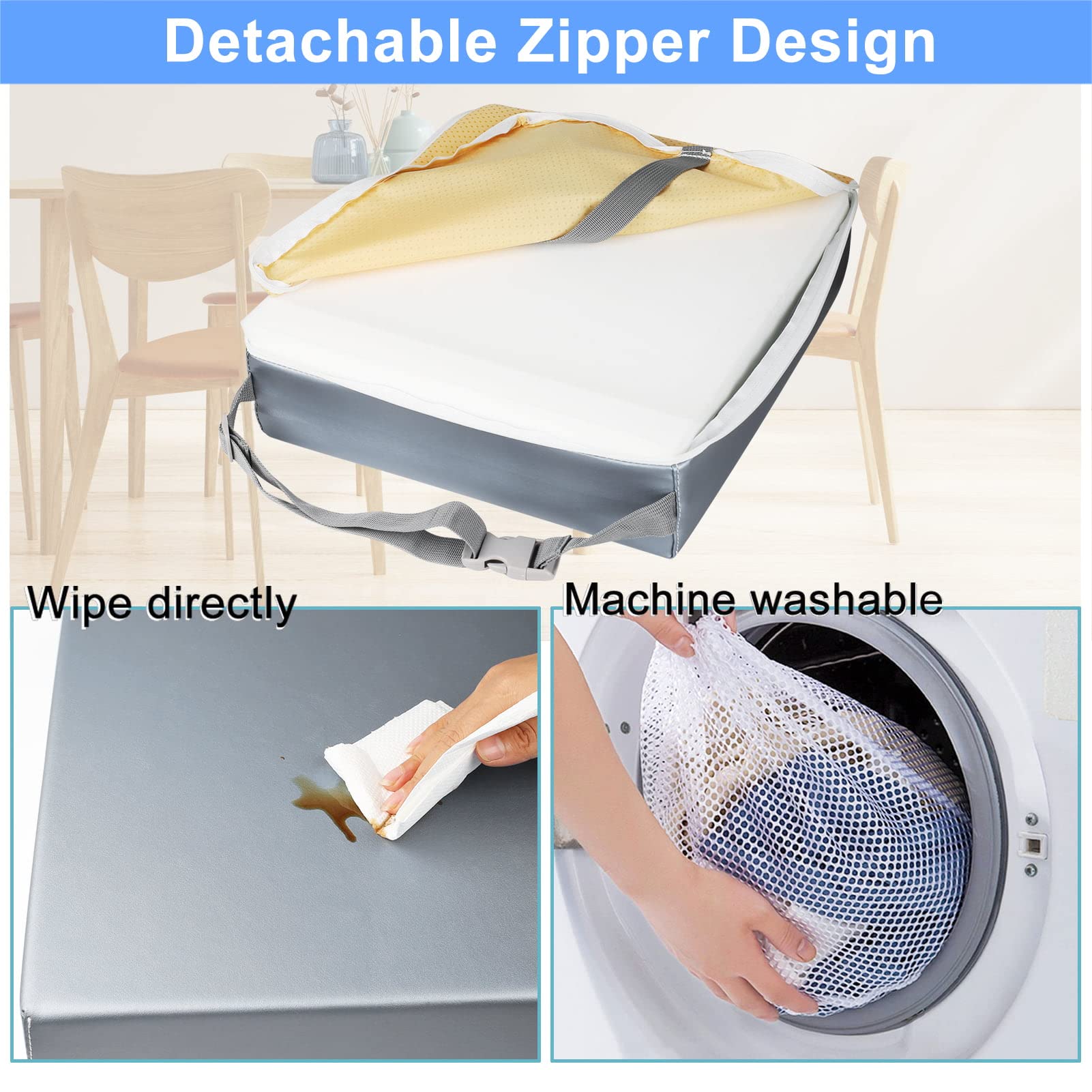 【Improved Design】Compared with other old models on the market, our toddler booster seat has thoughtfully increased the width on the seat cushion, covering the entire surface of the chair more comprehensively; Its best design is that there are no extra border lines on the surface, and it is not easy for stains to penetrate into the inner cushion along the four sides. In addition, the zipper design makes it easier to remove the enlarged seat cushion, which also makes cleaning more convenient.