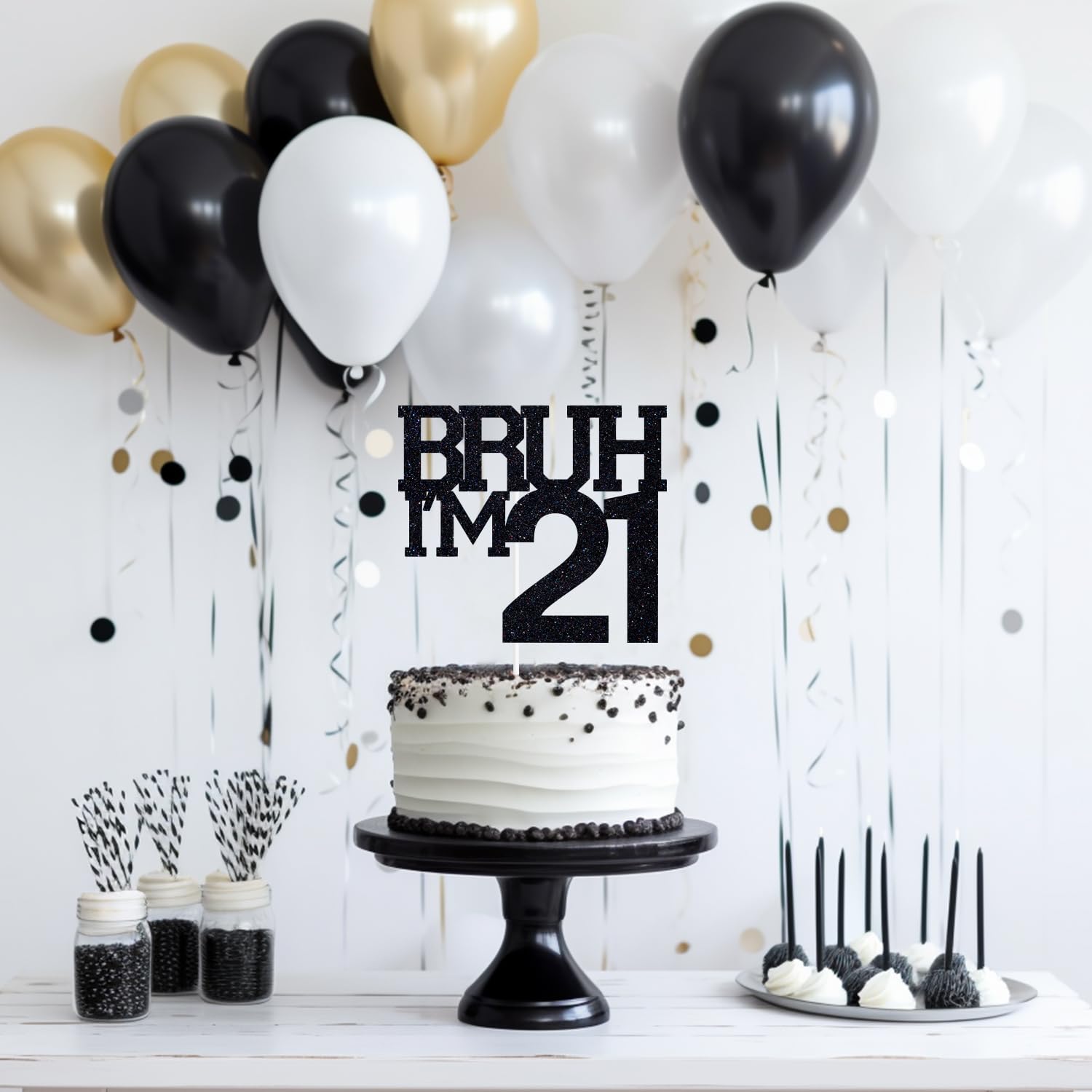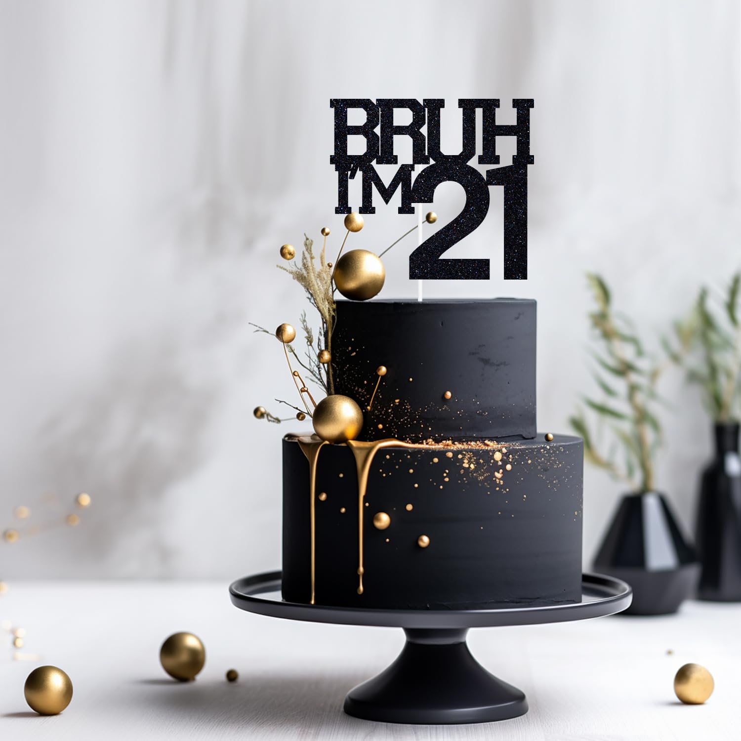 [21st Birthday Party Cake Topper]: Black glitter cake topper adds a trendy and eye-catching touch to your 21st birthday celebration with its sparkly finish and modern aesthetic.