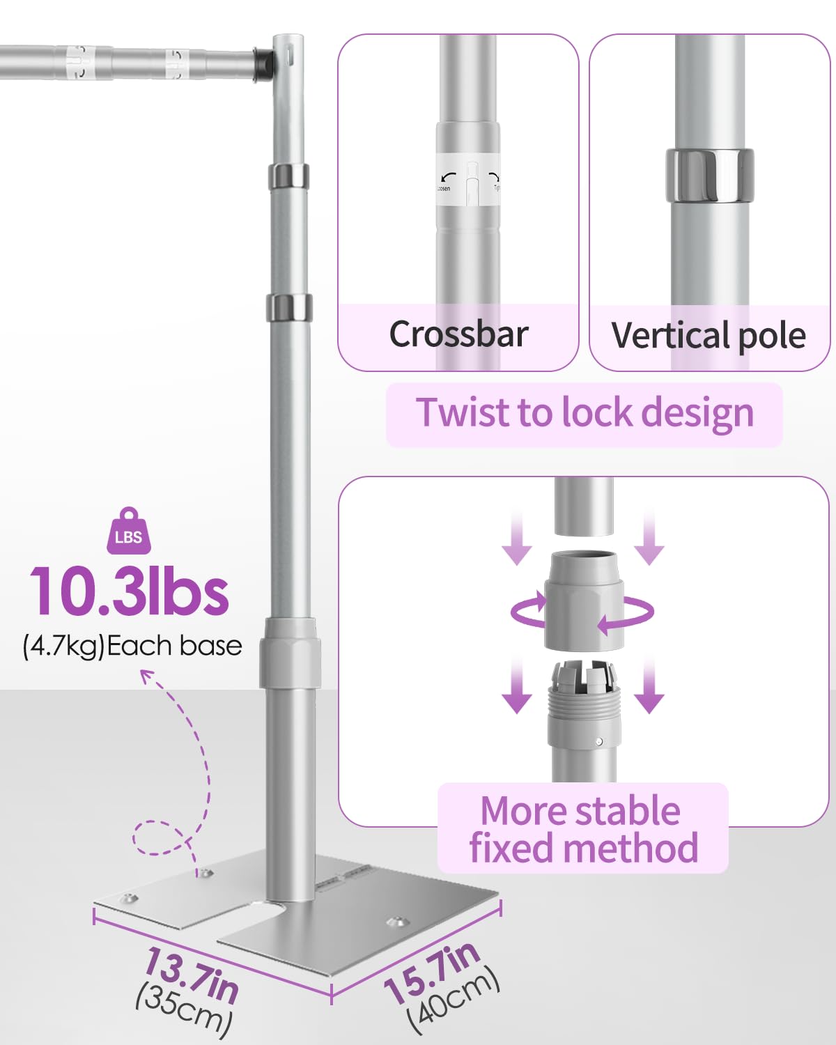 【 Heavy duty flat base】Each steel base is 10.3lbs, which will holde your lovely backgrounds, curtains, flower wall in place stably. And the space saving flat base will avoid the possibility of tripping