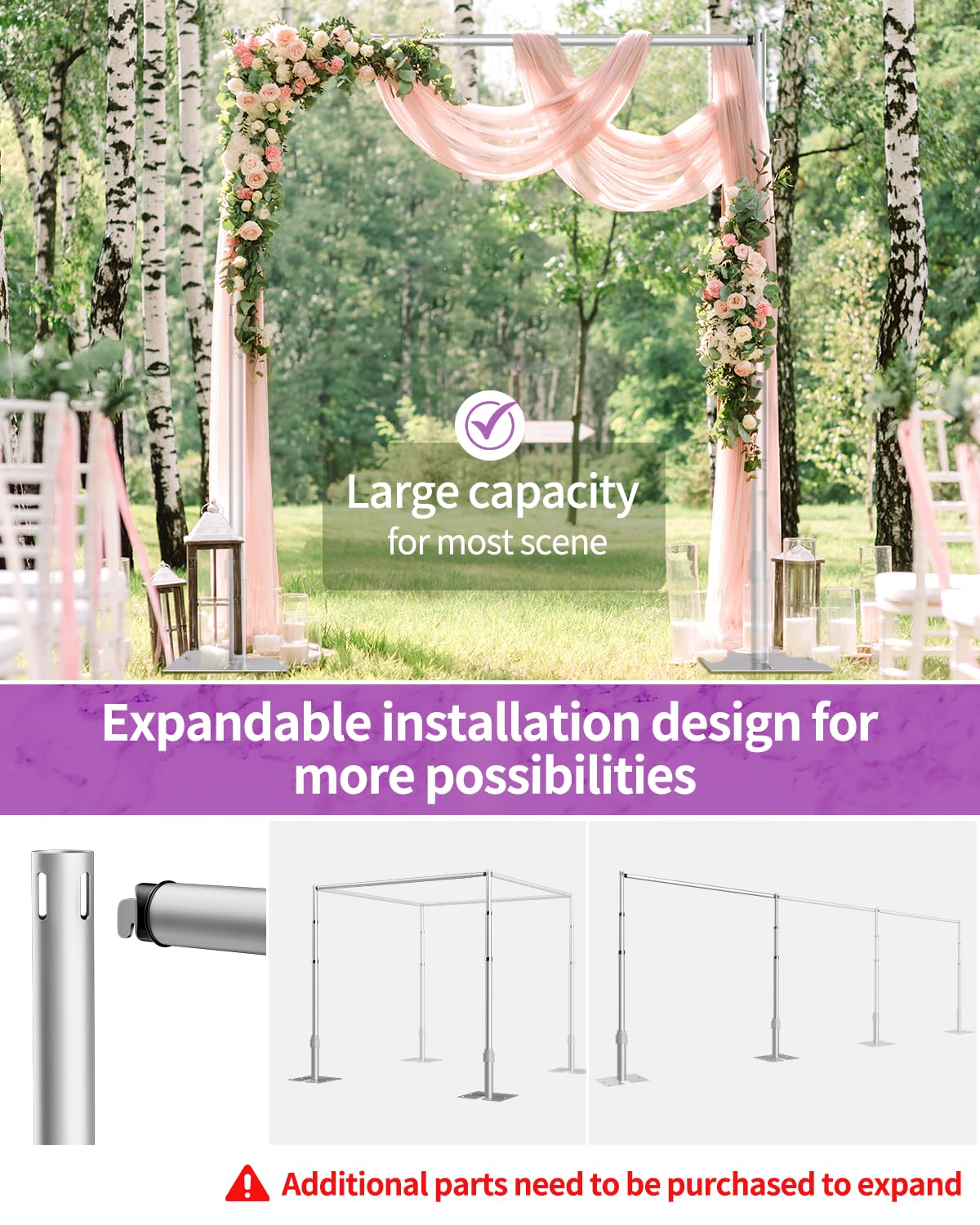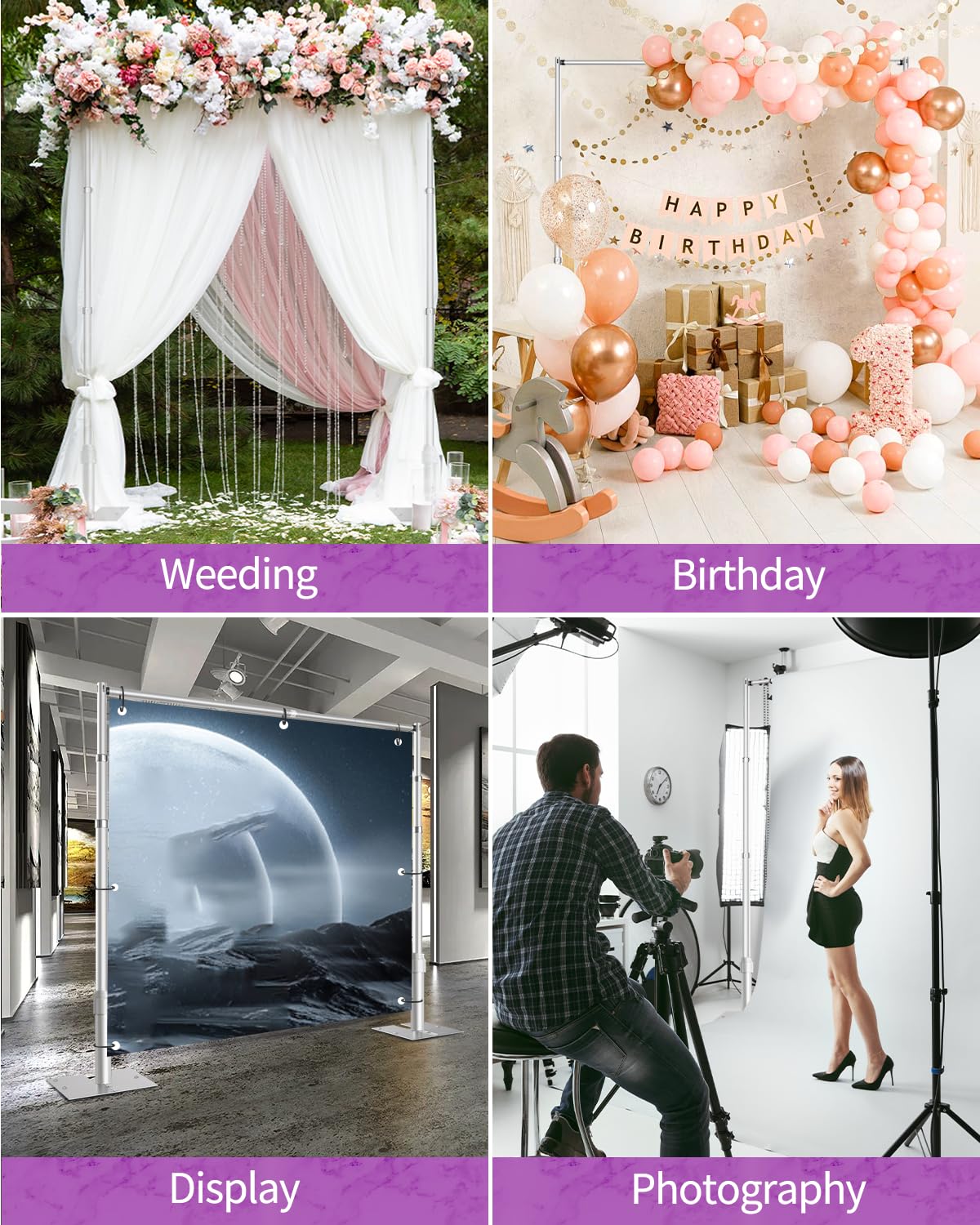 【Wide Application】This pipe and drape stand is suitable for weddings, parties, birthday, baby shower, photography, photo booths, trade show, commercial events etc. come and diy your unique backdrop