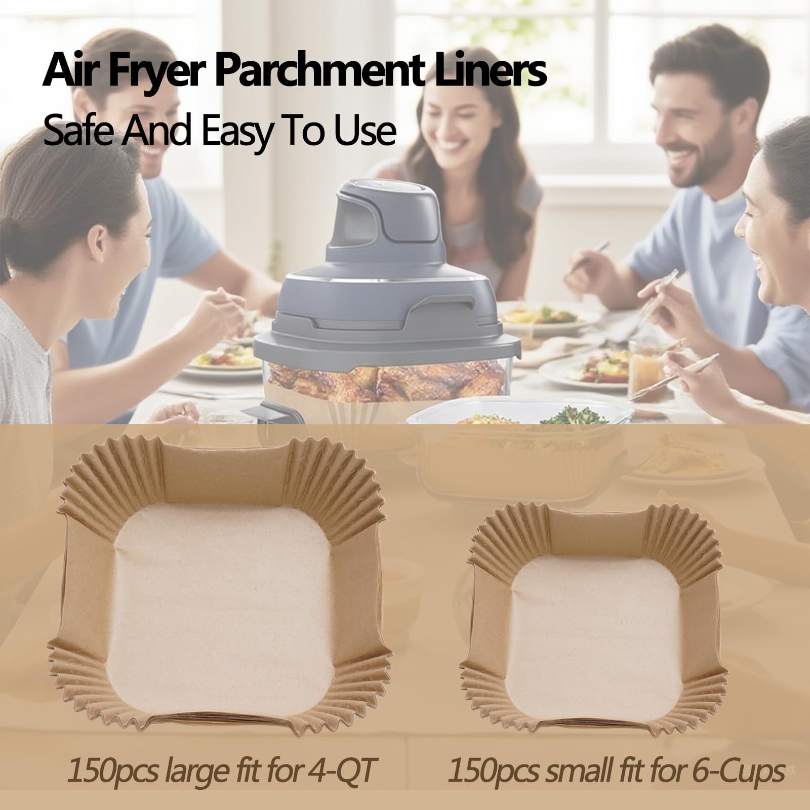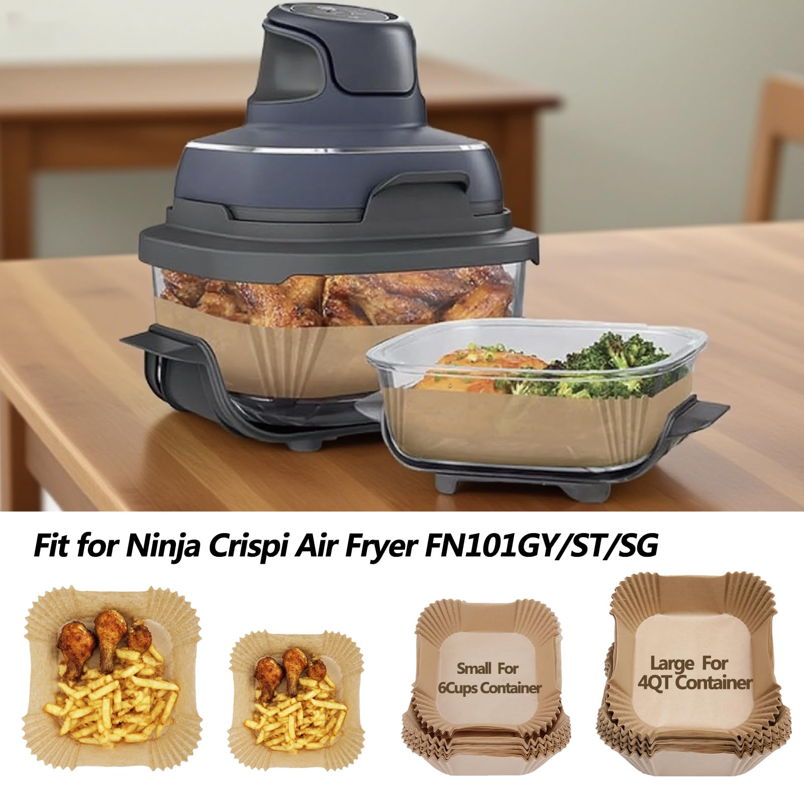 Ample Portion: Including 300PCS air fryer parchment paper liners,among with 150PCS large for 4QT Ninja Crispi containers,150PCS small for 6CUPS containers. Extra-large quantity is sufficient for daily replacement use.