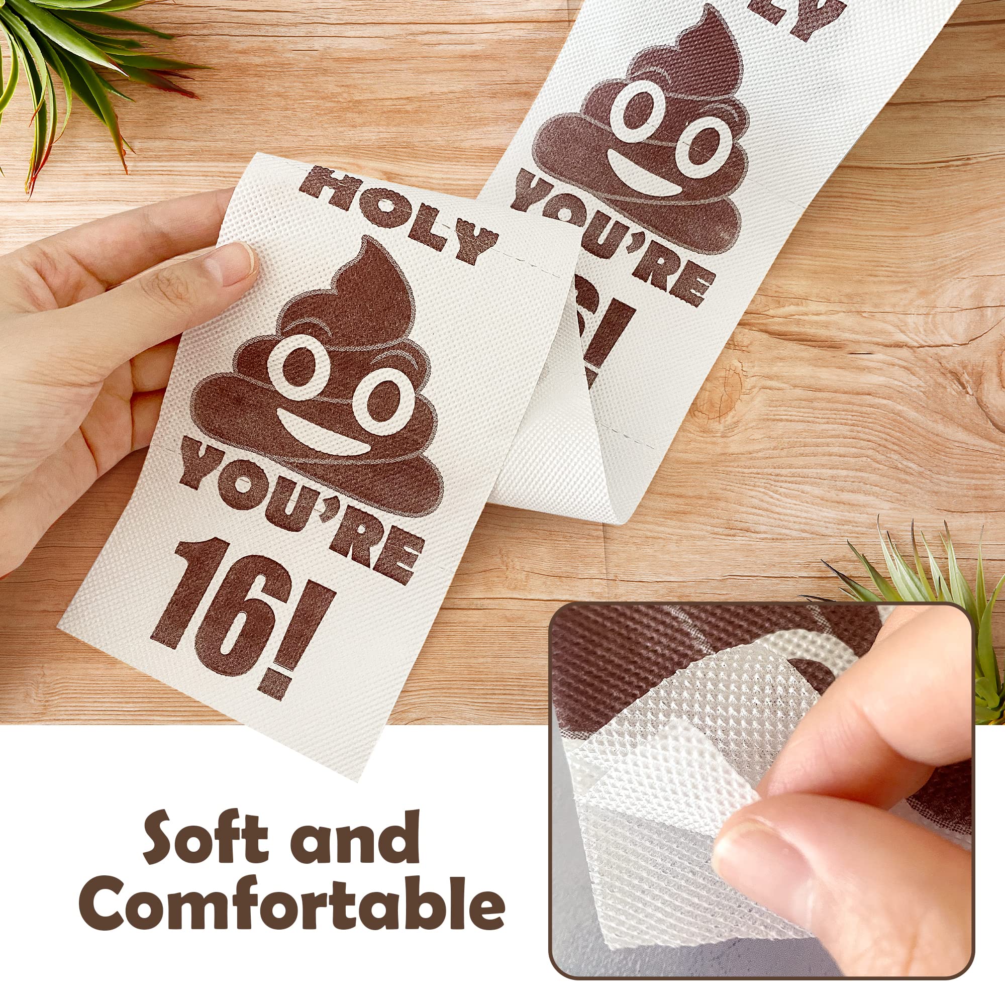 Durable & Practical: Our High-Quality funny Birthday toilet paper rolls are funny and practical! These comfy Birthday gift toilet paper gifts are great for use and super soft and absorbent! Need a laugh at the office or at home? Add to the 16th birthday turners' restroom or use it as a streamer to decorate their home, and catch their funny reaction