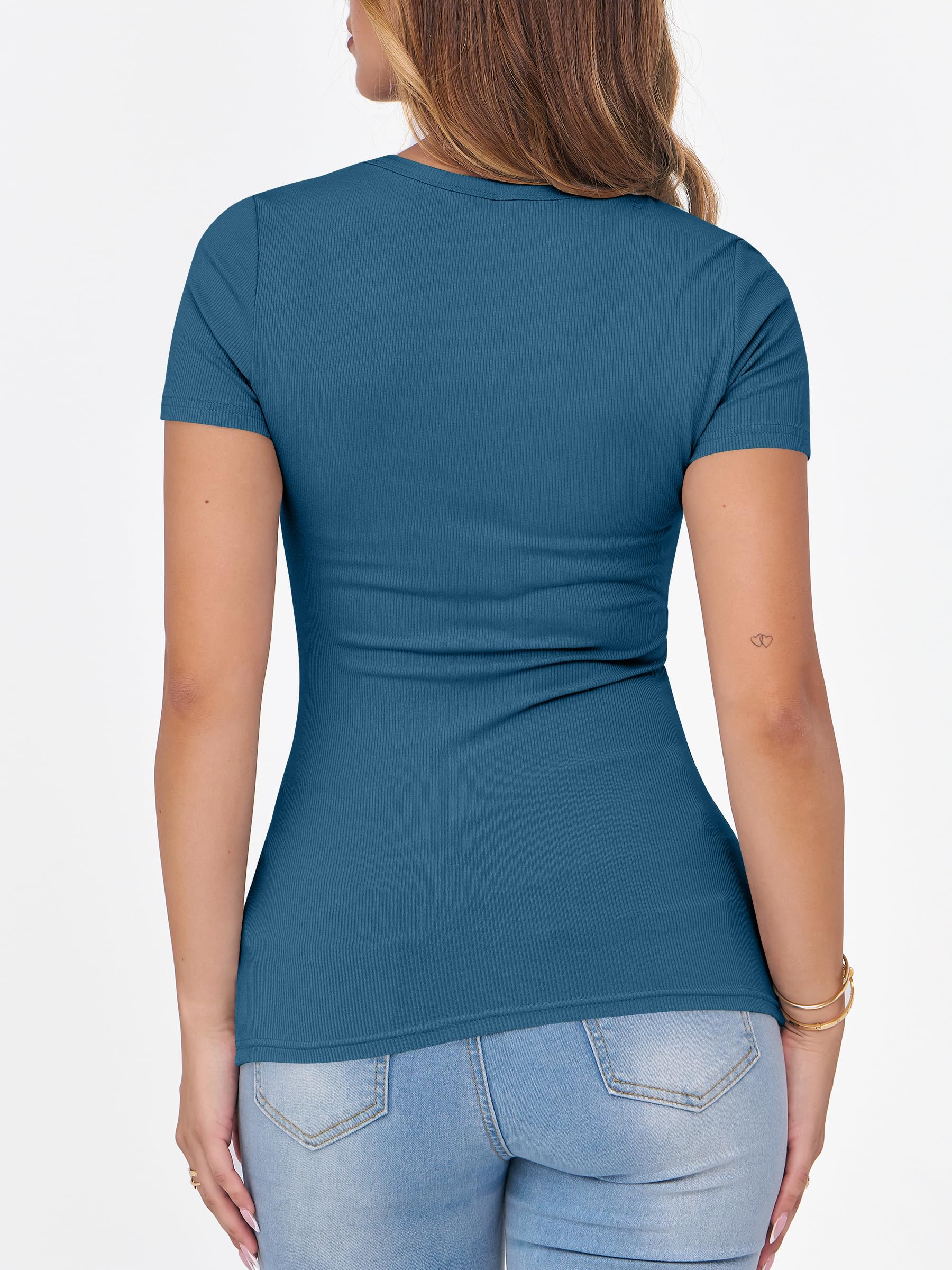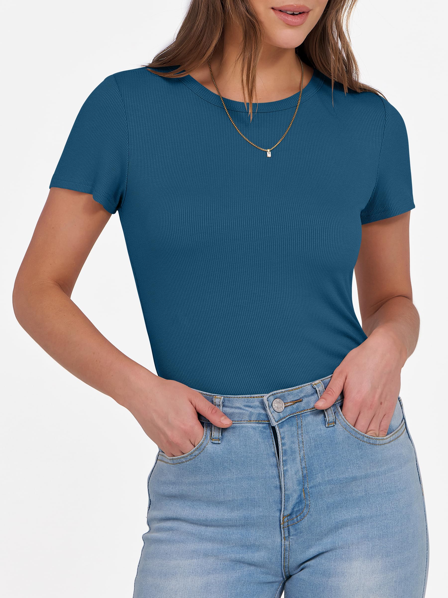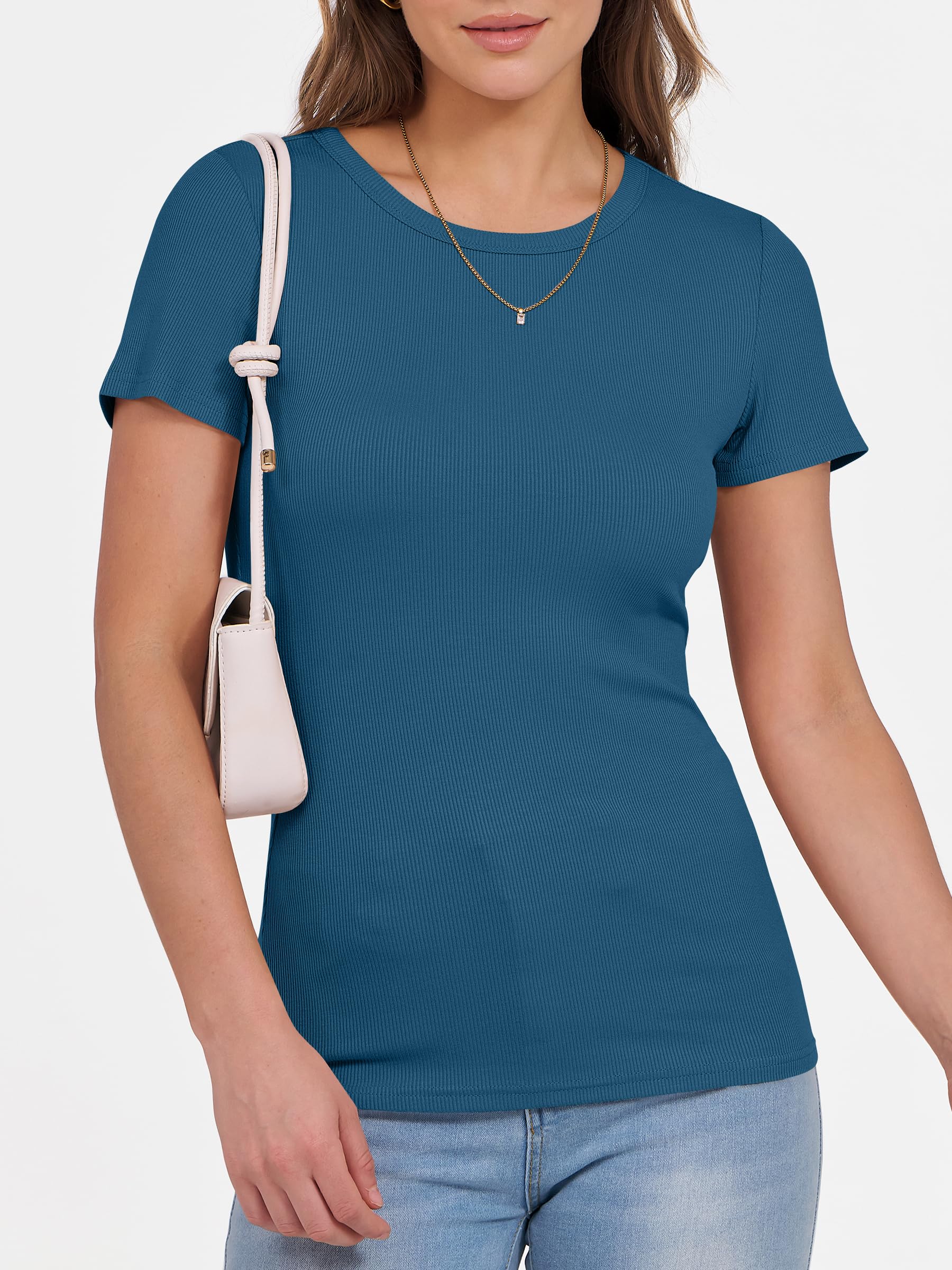 Features - Get summer-ready with our comfy and soft knitted fabric, perfect for all occasions. Our short sleeve crew neck design is versatile - wear it to school, the gym, the beach, or casual daily wear. The slim fit highlights your perfect figure, making you feel confident and stylish wherever you go. Comfortable, lightweight, and oh-so-flattering, our basic summer slim tee is an essential addition to your wardrobe.